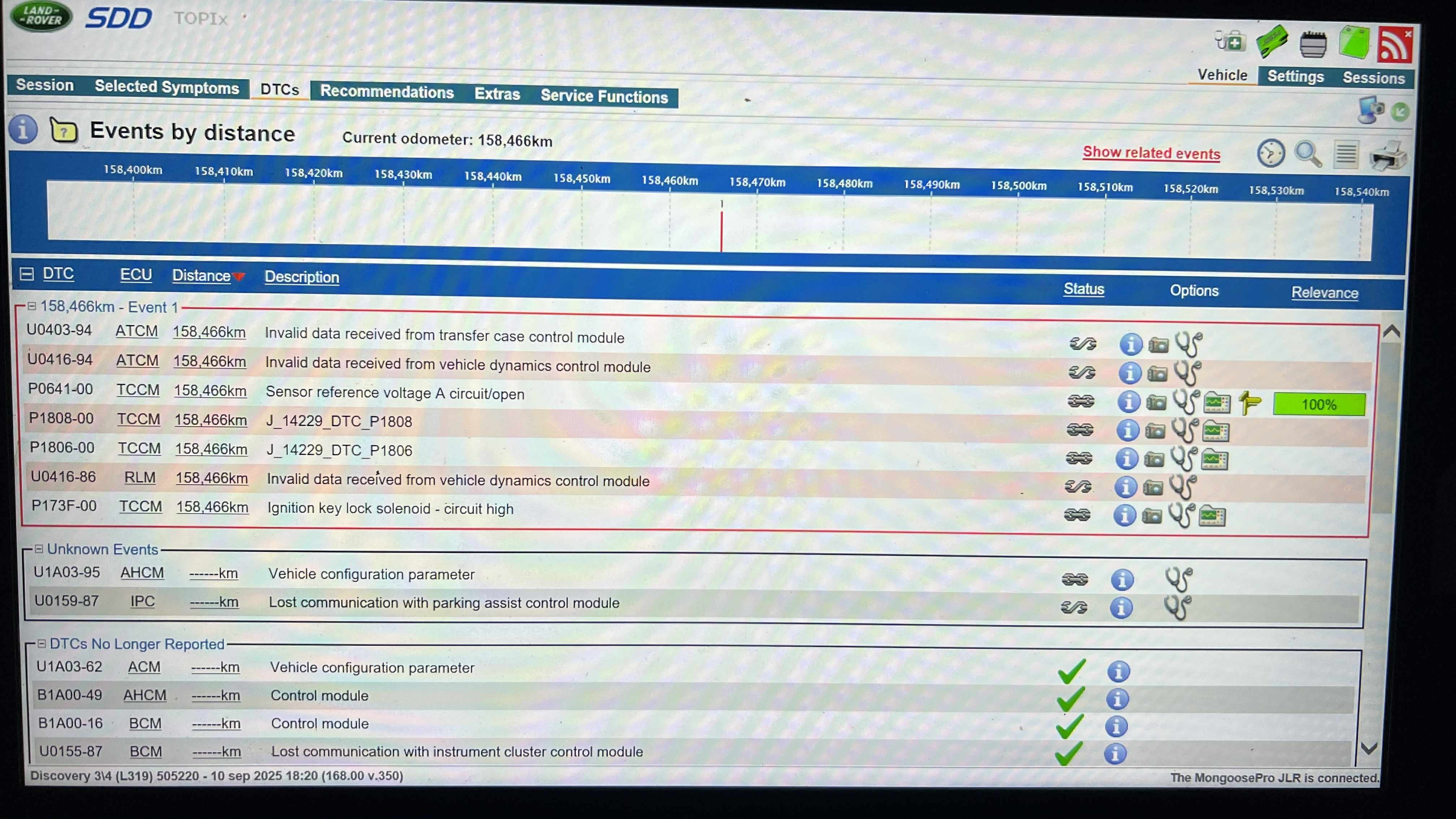 Dlhšiu dobu /pár rokov/ sa mi občas po daždi stálo že mi vyhodilo chybu..Transmission faut-terrainresponse not available...Ale vždy po nejakom čase to prestalo trucovať..Len teraz je to už tretí deň...A najhoršie na tom je to že tam mám práveže malé rýchlosti ...