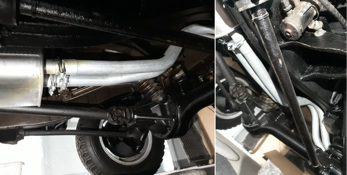 zapalovací kabely, svíčky, nový vodní chladič, startér, netekoucí koule v nábojích předních kol, výfuk, potažené poslední sloupky novou koženkou, funkční brzdy, gumy.