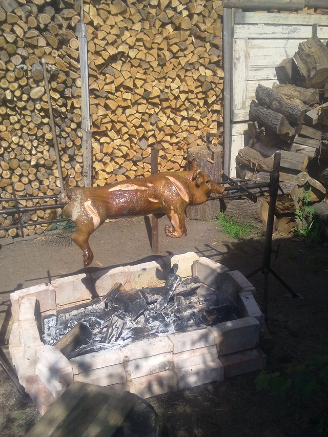 Tohle téma už dlouho čtu a poslintávám si. Tak jsem si řekl, že se taky přidám. Mám griloudírnu (bude-li to někoho zajímat, mohu pofotit) vlastní konstrukce a používám ji občas i jako troubu - do prostoru udírny vložím neuzavřenou plechovou "troubu", do ní pekáč a pěkně naostro topím suchým měkkým dřevem, pokrm v "troubě" se krásně upeče a když dopékám v odkrytém pekáči, tak to dostane ještě takovou nějakou další dimenzi - není to uzené, ale ten živý oheň je tak nějak z toho jídla cítit. Na ukázku přikládám foto výsledku takového snažení - vepřové koleno podle osvědčeného receptu tentokrát upečené ještě s bůčkem - věřte, že to chutnalo snad ještě líp než to vypadá