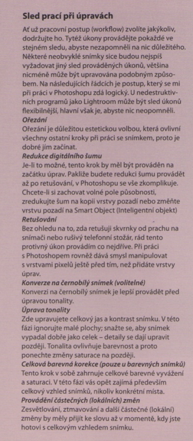 Vím, že dotaz byl sice na Tomáše, ale nedá mi když jsem si to zrovna včera přečetl a má to celkem hlavu i patu: viz. obrázek.Neklan píše:...co všechno obvykle s fotkou děláš v počítači, když ji máš v RAWu?