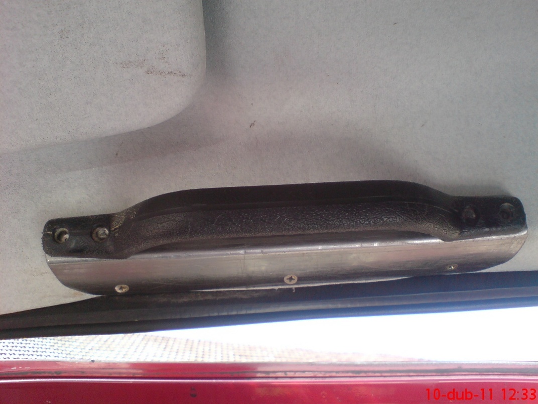No mě tam chmatal úplně každej,tak sem to vyřešil madlem ze staré škodovky.Madlo sem prvně nanýtoval na nerez plech a pak sem to přichytil šroubama k hornímu lemu střechy