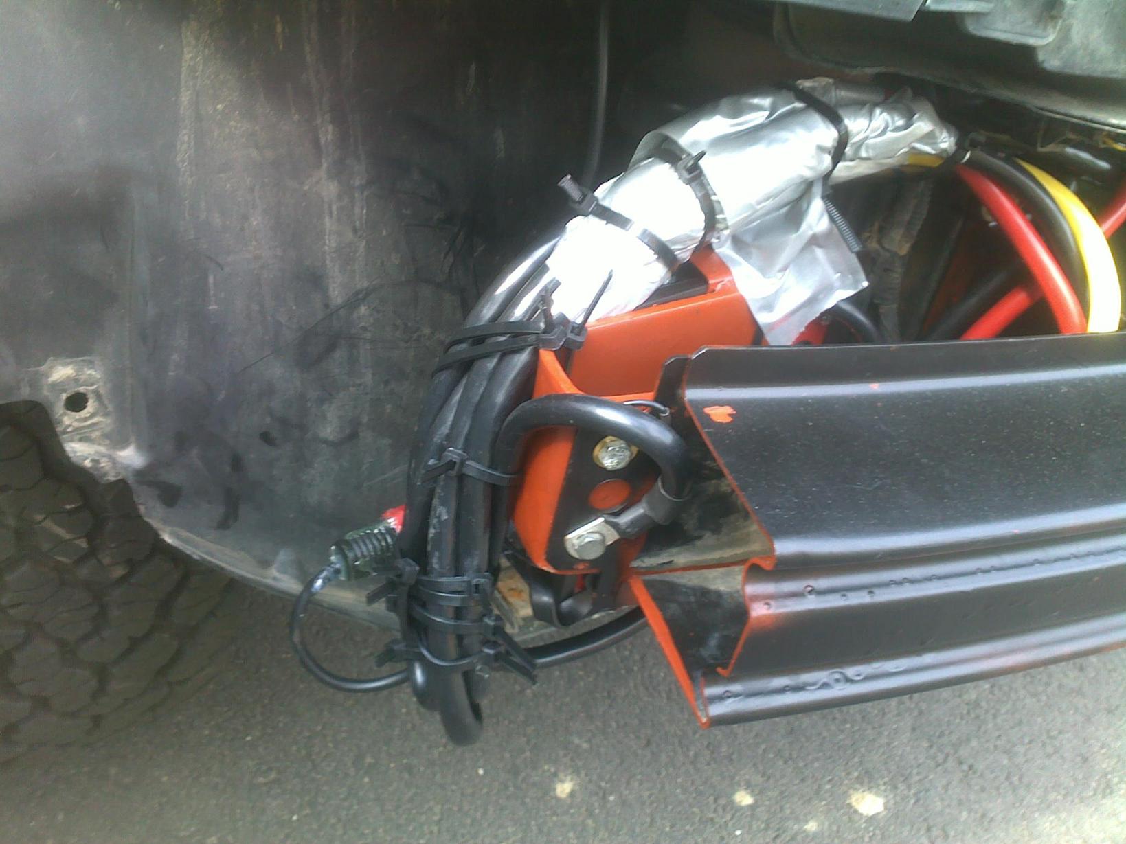 Stávající výztuha na obou koncích beze změn drží nádobku a na druhé straně jednotku a ovládání k navijáku