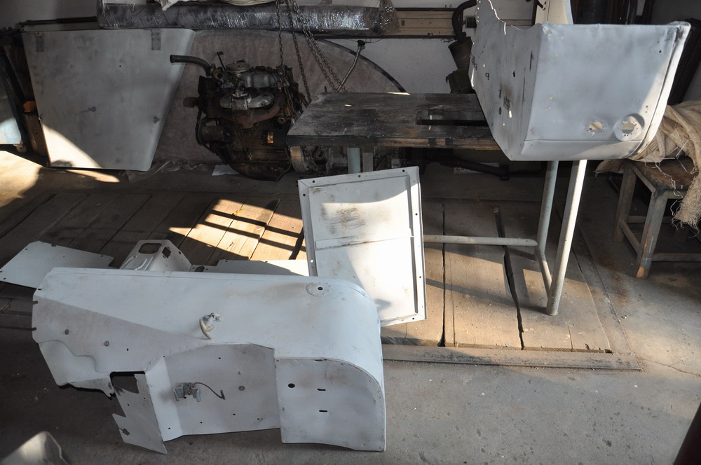 Nakonec jsem po dnešní návštěvě dílny musel konstatovat, že pravda je asi někde uprostřed. Slabounké plechy jsou některé úplně rovné, zničené jsou oboje dveře a pravý přední blatník. Objednám na něj pouze venkovní část, zbytek jsme se rozhodli pokusit zrenovovat. Kapota je docela ok, zbytek taky. Ještě bych potřeboval vrchní část levých dveří. Jsou horně zdeformované, nevíme, jestli se vyplatí je opravovat. Posuďte sami. Je už zbytečné se v tom hrabat, stejně se to musí dodělat...
