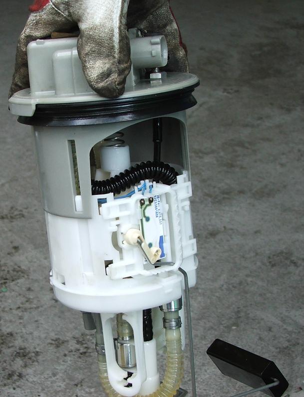 Ahoj, když ho neslyšíš vzadu tak v té nádrži .Ty čerpadla jedou spolu současně hned po zapnutí klíčku. Jinak to čerpadlo drží tou plechovou přírubou kolem těch hadiček a konektoru.Vem nějaký hrubý průbojník(něco tupého) a kladivo a opatrně tu přírubu vyťukej (odšroubuj)je to takový bajonet.Na obr.je použitý přípravek,ale ten tu asi nikdo nemá.