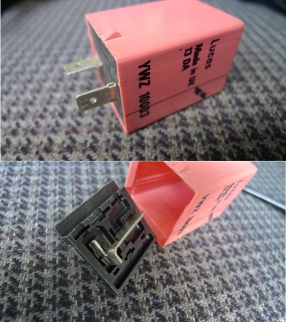Za prístrojovkou som našiel takéto relátko a keďže sa mi len dva vývody zdali podozrivé, rozobral som ho. Je to obyčajná prepojka. Len tak pre zaujímavosť, viete niekto na čo je táto príprava?