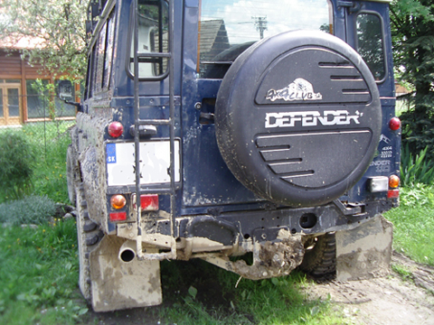 Dávám fotku Rosiho defíka, kterej má, pokud se nepletu, 30 mm podložky a disky ET 8 (gumy 255/85R16)