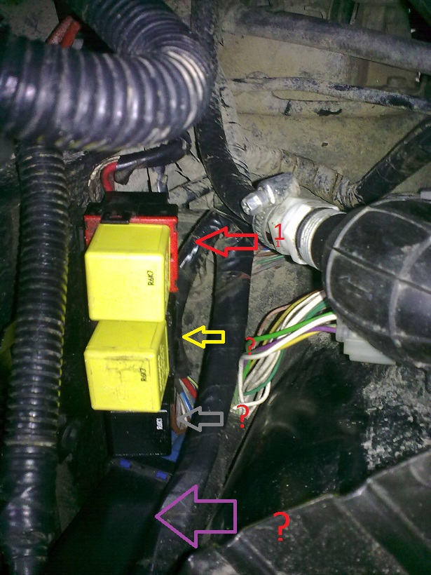 V motorovom priestore sú 3 relé a 1 večšia čierna krabička z fialovým spodkom a vela káblov.
