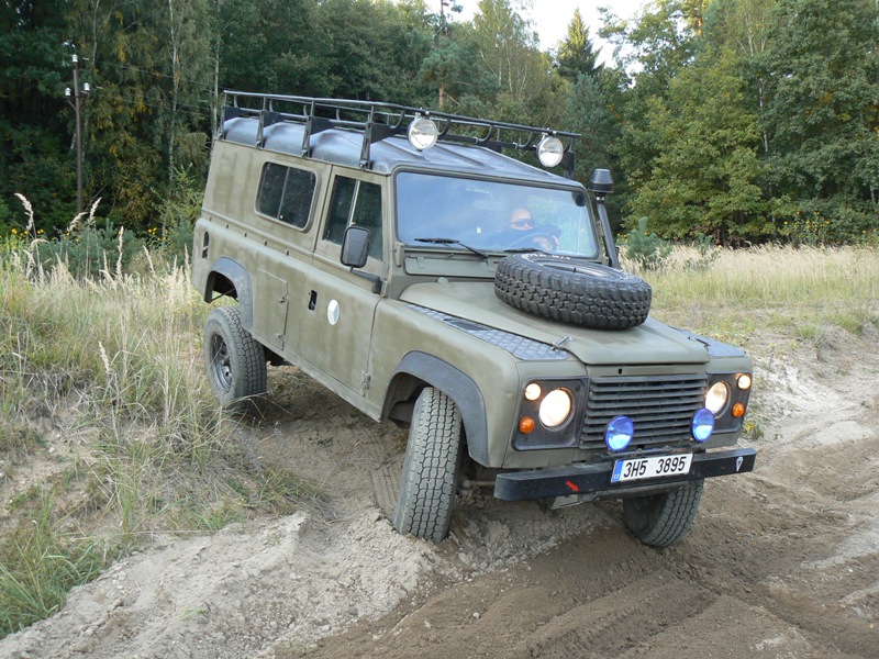 Je to Land Rover 110 HT rv. 1986 (koupil jsem ho od Ramjaha), 200TDI (přestavba), byť to oficiálně Defender ještě není, u nás doma to je prostě Def, Defík:). Původně to byl voják, pak dostal žlutý kabát, od Ramjaha pěkný černý mat a u mě zelený mat - zpátky do vojáka
