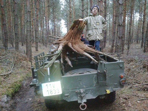 Přeprava pařezů na střední a kratší vzdálenosti.