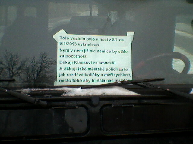 Ve stredu jsem jel po dlouhe dobe do Prahy na jednani, v Dejvicich stala tahle 90ka se vzkazem za oknem: