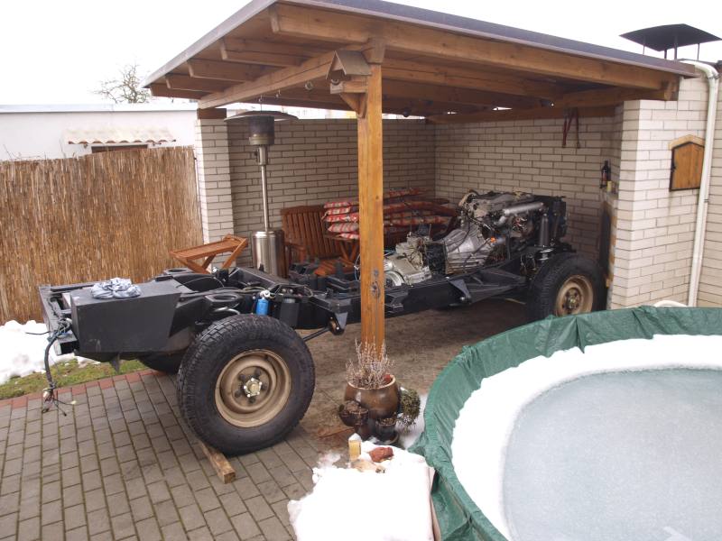 Aby jste neřekli, že se flákám tak tady je skoro nastrojenej rám, chybí kus řízení, naftové potrubí, přední brzdové hadičky a čerpadlo webasta, zítra tam asi šoupnu motor.