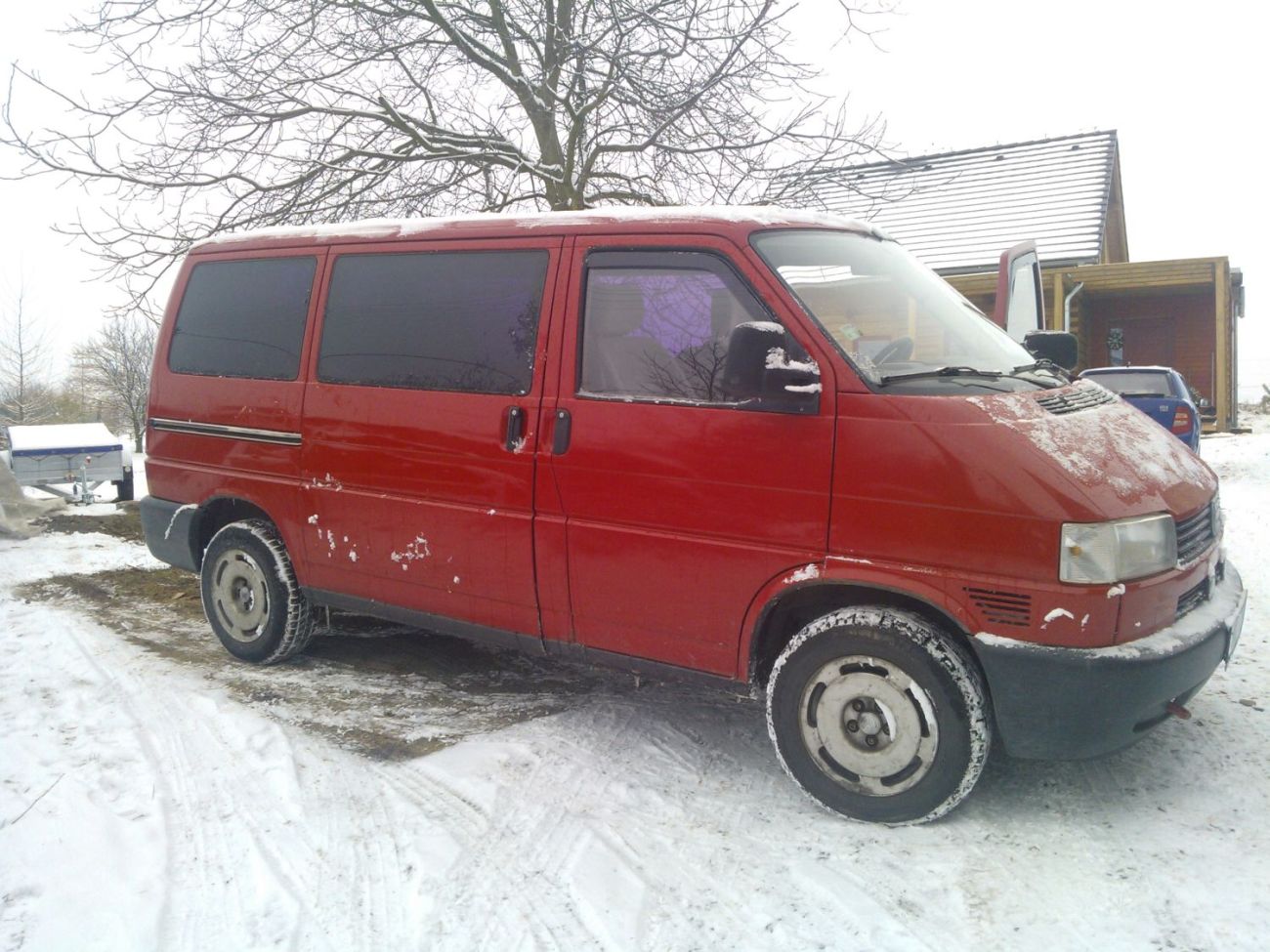 Je to VW T4, r. v. 1997, 1.9 Tdi, 50 kW (jezdím s tím za 6 - 7 litrů nafty), 2 - 9 míst (ve stávající úpravě 7), tažné zařízení, mechanický sytič, střešní okno, dovoz z D, v ČR jsem první majitel, najeto 400 tis., po dovozu repase převodovky, nová spojka, nový lak, komplet dělaná přední náprava - čepy, dorazy, stabilizátory atd., brzdy před rokem, nová baterka, v prosinci jsem dával nový zadní díl výfuku, eko se už neplatí. Najel jsem s ním za ty dva roky 20 tisíc. Je bez zjevné koroze. Má nové zimní pneu (Barum Snovanis) na původních alu a na léto nové letní pneu plus nové alu (vše 205/65/15). Je to transportér, ale přestavěn na multivana (tj. i lůžková úprava). Vše co na autě bylo třeba udělat, jsem udělal.