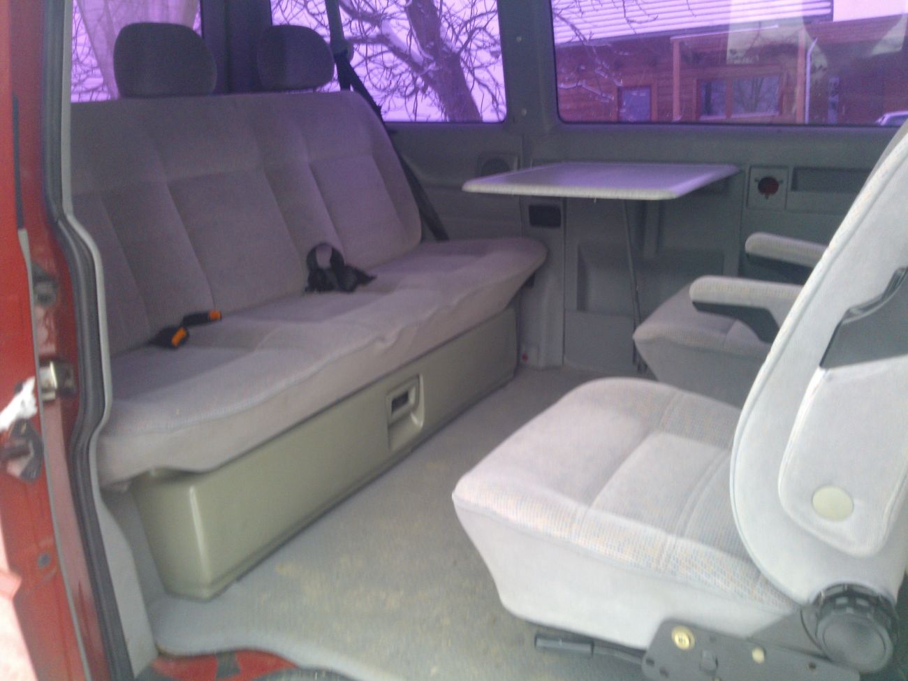 Dovezl jsem ho před dvěma roky z Německa pro naše divadelní potřeby. Trochu se nám ale změnily plány a auto je v současné době víceméně nevyužité. Auto je přestavěno na Multivana, tj. lůžková úprava, stoleček, snadno vyjmutelná zadní sedadla atd.