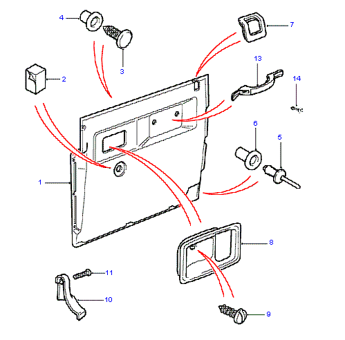 Normálně to vytrháš z těch čudlíků. Klička oken má závlačku z drátu, tu vytáhneš snadno. Madlo odšroubuješ a ten čudlík na zamikání se musí odklonit a ten jeho lem se po zamáčknutí takovejch malejch nesmyslů vytáhne nahoru. Když ti něco z toho prdne tak nezoufej, stojí to pár korun. Třeba v mrazu to praská rádo - plast křehne. Takhle vypadá to kolem kolíku zamykání... http://land-rover.eliott.in/cz/e-shop/2 ... 38pma.html