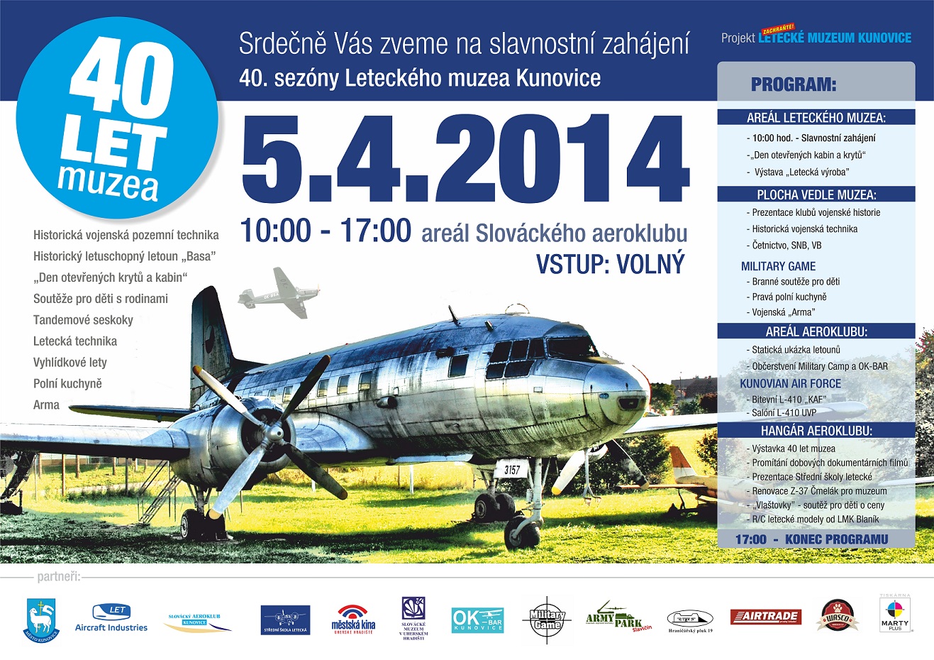 Chtěl bych Vás jeho jménem tedy pozvat na slavnostní zahájení 40. sezóny Leteckého muzea Kunovice. Akce se uskuteční 5.4.2014 v době od 10:00 – 17:00