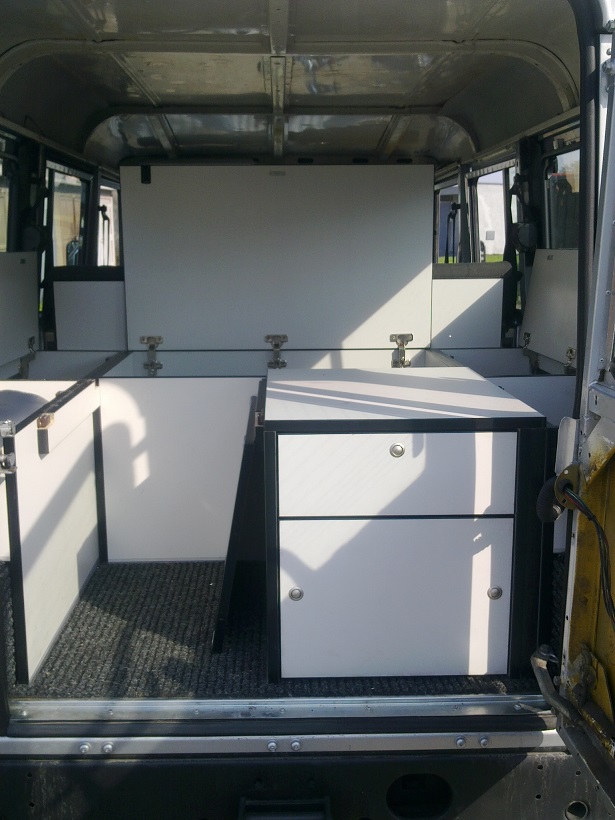 Tak sem se do toho taky pustil. Nutno uznat že prvně sem si myslel, že v pondělí začnu a v sobotu už budu na fesťáku spát v autě. Teď je konec září a to znamená už druhej měsíc od začátku. S přestávkama po večer a odpolednách sem na tom strávil dost času. No.....k věci. Celý je to 2cm tlustá dřevotříska, inspirace Rosomák a LubošM tedy bedny na blatníkách místo lavic. Mezi nima deska až po zadní sedačky. Zadní sedačky lze za jízdy používat a pro spaní se na ně dává dělená deska opřená o tyto složené sedačky. Celý natřený černou matnou, zvrchu polepený kobercem. Mimo to že sem si vyřešil ložnici do auta, tak sem zlikvidoval cajk v bedně v kufru, lékárničku, vestu, lana, šekly a kurtny pod sedačkou všecko do těch super beden.
