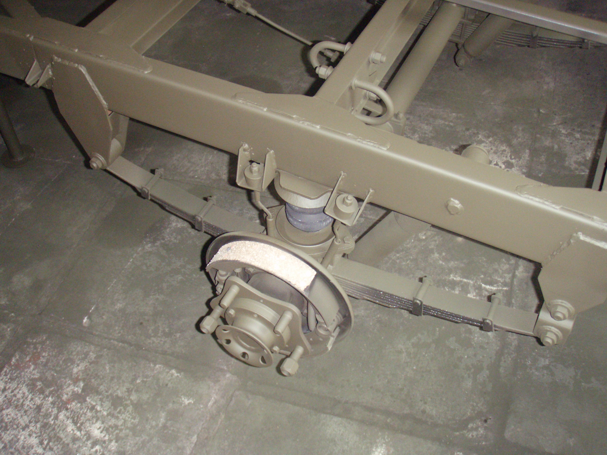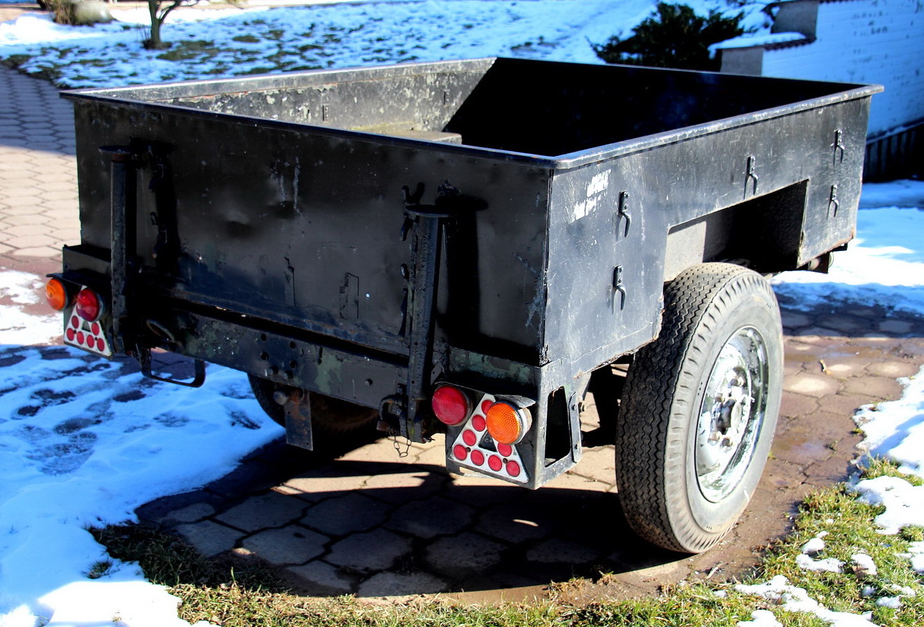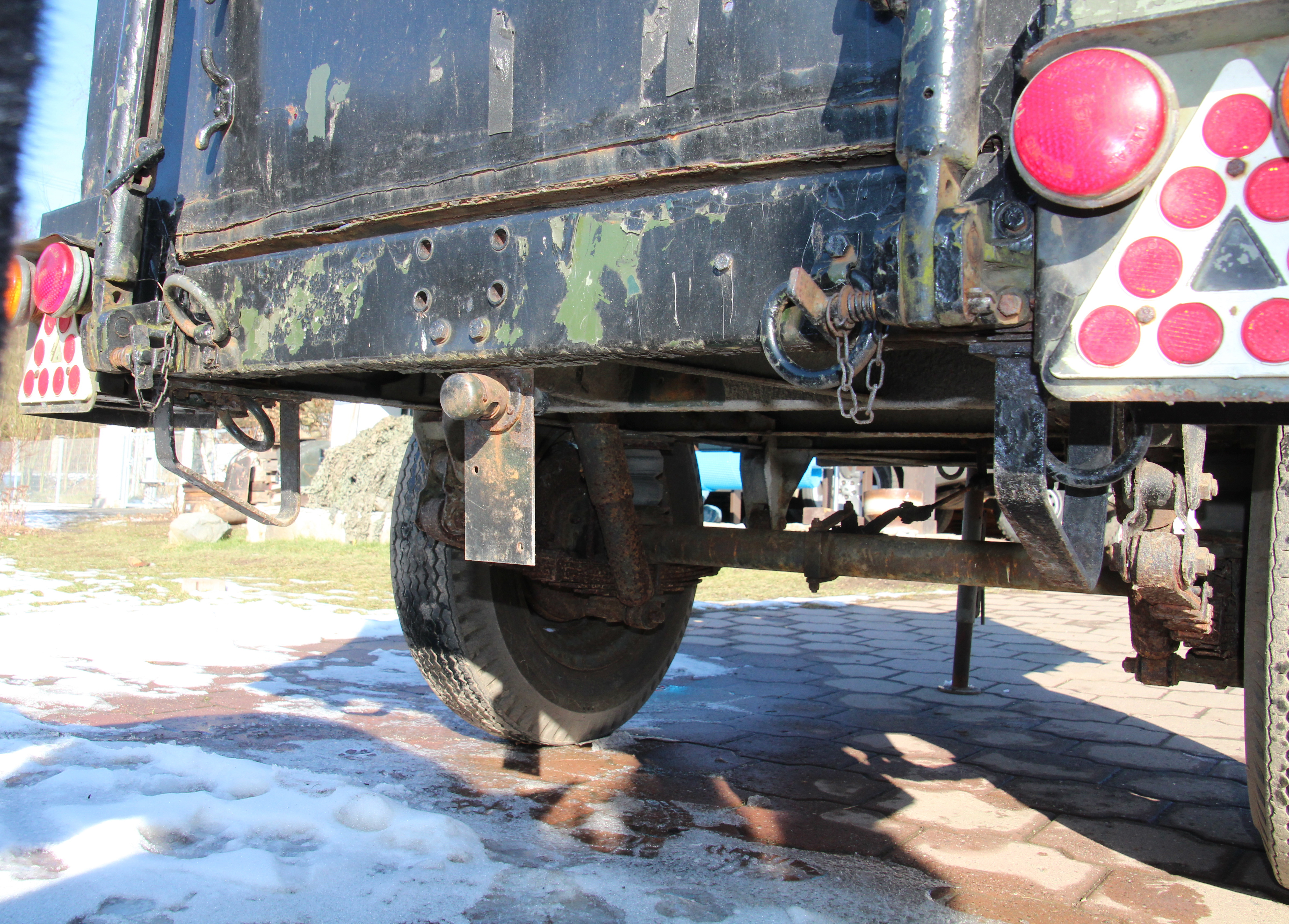 Protože civilní UK značky maj jinej formát než ty vojenský, tak došlo na prznění. Levej roh je zařízlej, odstraněný osvětlení značky i s držákem a pod nárazník nabastlená podlouhlá značka osvětlená původním "convoy light".