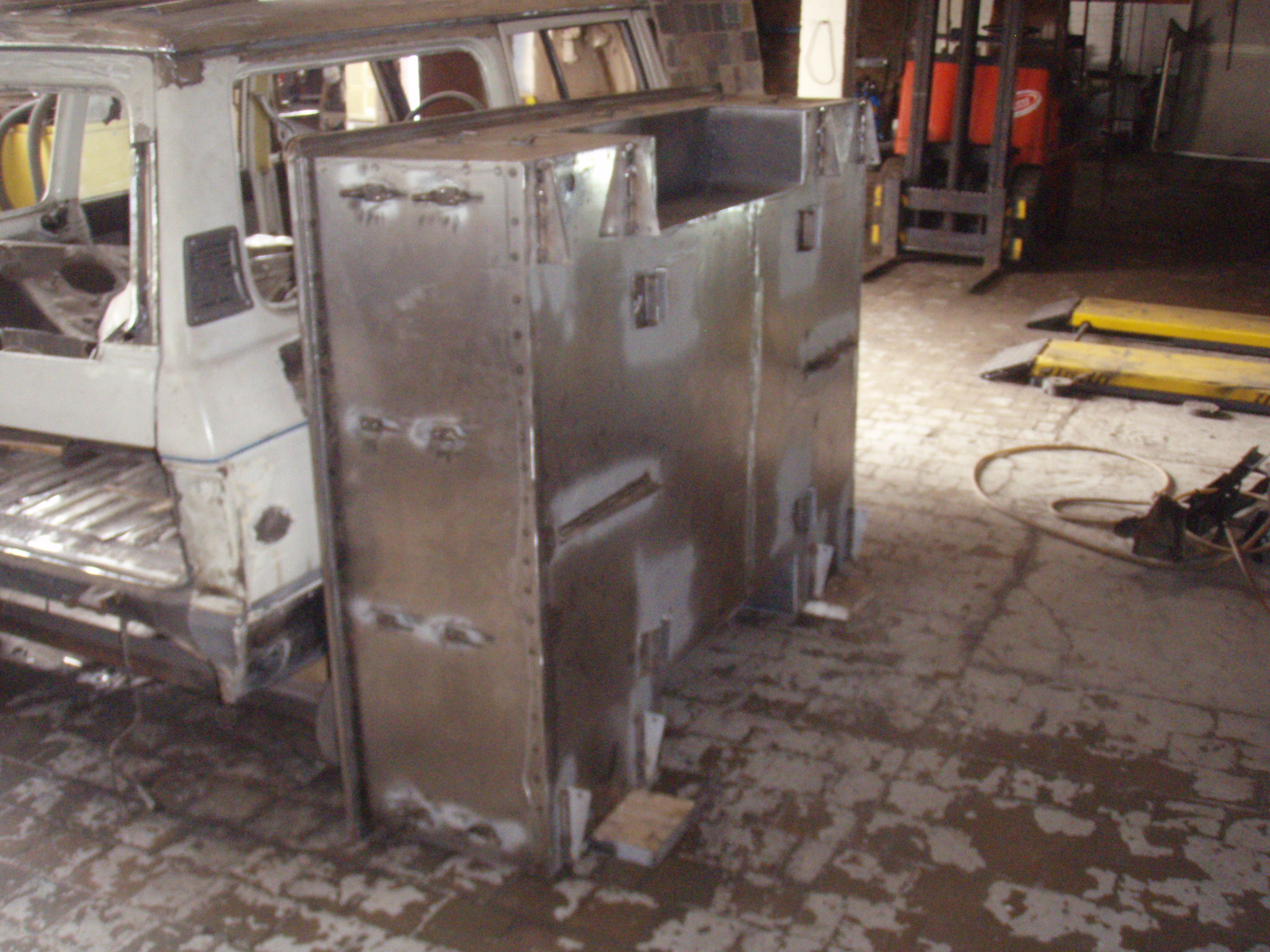 Takže jsme se taky pustili do renovace sankeyho. Přijde mi zbytečný zakládat nový vlákno a dám to sem. Tohle je výchozí stav. V podstatě klasicky shnilá korbička a lehký napadení kutilem. Stav na výstupu by měl odpovídat co nejvíce originálu i z důvodu veteránských testací.