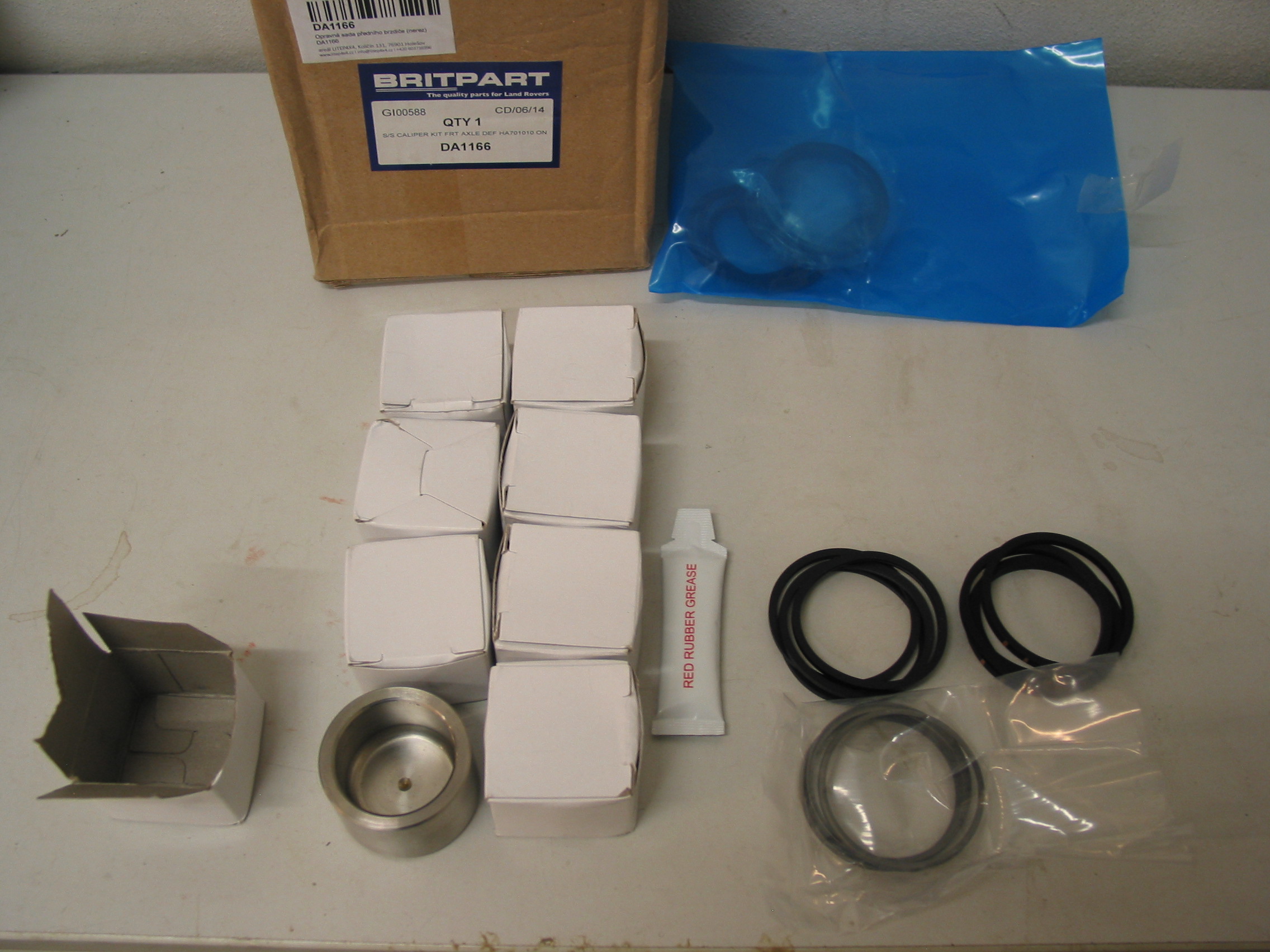 Sada osmi pístků DA1166 (Britpart) pro oba přední bzdiče včetně těsnění vyjde cca na 2300Kč.