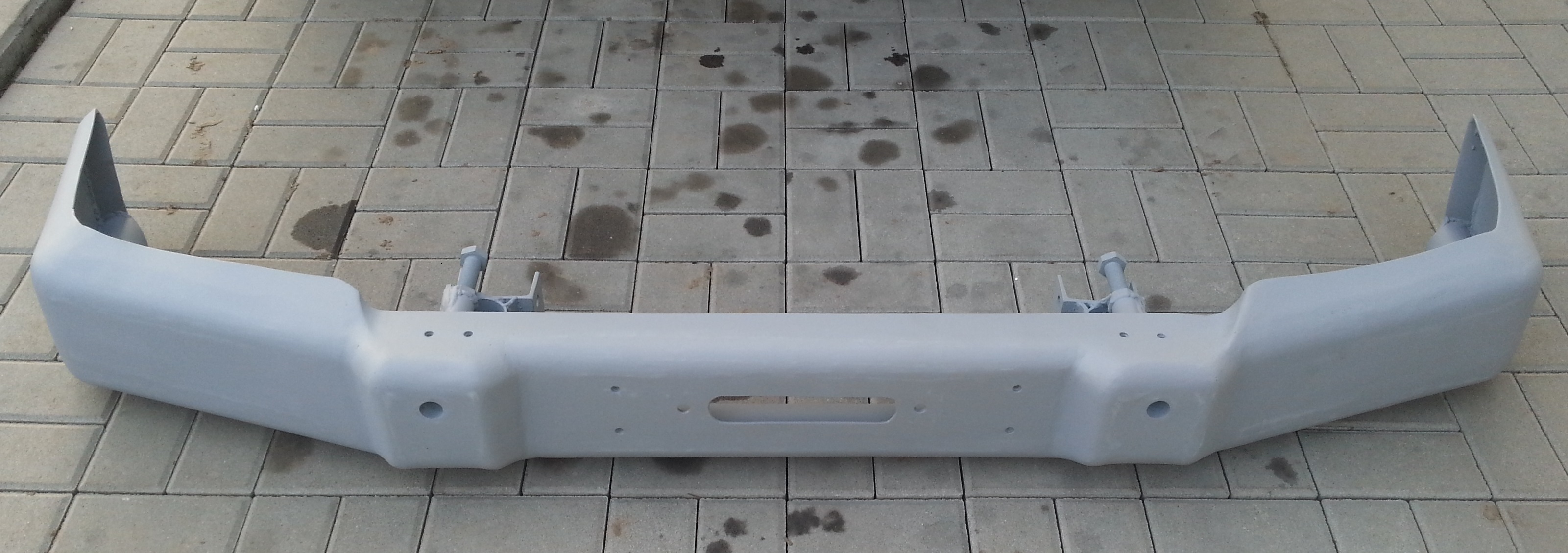 Tak nárazník opískovanej, ozinkovanej a stříknutej základovkou. Už jenom lehce dotmelit a nastříkat černou.