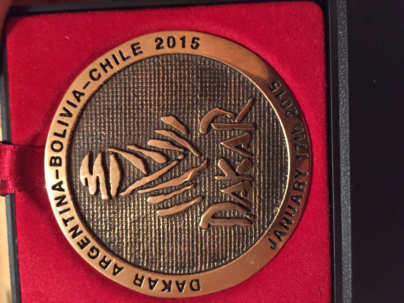 Trochu se pochoubím. Zastavil se za mnou manželky bratranec a kecali jsme o Dakaru a tak jsem ho poprosil zda by mi půjčil jeho medaili a já si ji vyfotil. Moc lidí ji asi v ruce nemá možnost potěžkat je fakt těžká