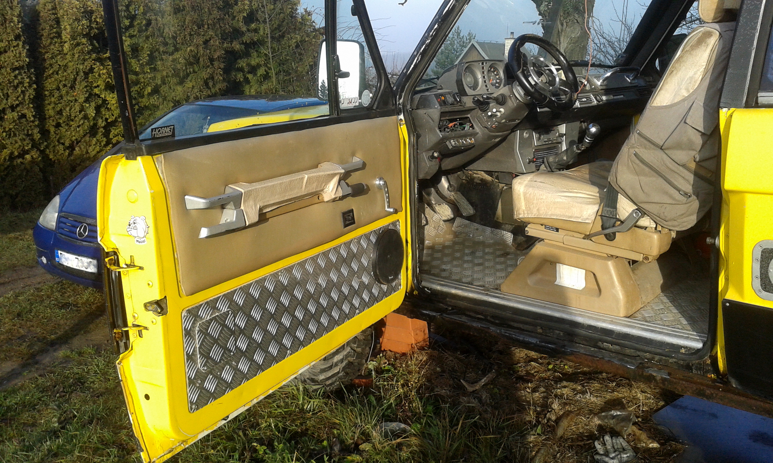 r.v. 1979 s klimatizací. Vůz je bez jakékoliv elektroniky, tedy 2x karburátor. RZ v depozitu magistrátu od r. 2010 Stav úměrný stáří a opotřebení avšak funkční kromě předních brzd (třmeny a potrubí nutno vyměnit) -agregát ok -originál převodovky ok (původní, festovní čtyřrychlostní s redukcí a uzávěrkou) -zadní zesílená náprava z Defendera 110 s diferenciálem Salisbury -nevýrazná koroze karoserie (žádné díry durch kromě boků uvnitř motorového prostoru nahoře, kde jsou spoje mezi ocelovým skeletem a hliníkovým blatníkem) -rám podvozku ok. Úpravy ověřené provozem a zkušenostmi: Lift podvozku na vysokých pružinách + tlumiče, nové pneu MAXXIS 33x12,5 R 15, naviják ComeUp DV9500, přední pevnostní nárazník (nerez/ocel) s masívními tažnými oky, CB, střešní xenonová rampa, spodní kryty (vrstvený dural), zadní kryt nádrže (vrstvený dural), kryty diferenciálů, podlahy v interiéru slza hliník, sání vzduchu "šnorchl" + velký cyklon filtr "Knecht", zesílené podvozkové části (řídící a spojovací tyče a nápravová ramena. Přední upravená pro úhel). Zapsáno v technickém průkazu: Litá nebo obyčejná kola 33x12,5 R15 nebo 31x12,5 R 15 Tažné zařízení 2800/750 kg Vůz prodávám se vším příslušenstvím tak jak byl vůz používán a je nutno na něm udělat některé renovace a servisní kontroly. K tomu v ceně vozu přidám plechařinu a hromada dalších dílů včetně podvozkových, posilovače brzd a př. třmenů. Vozidlo je možno vidět v Brně