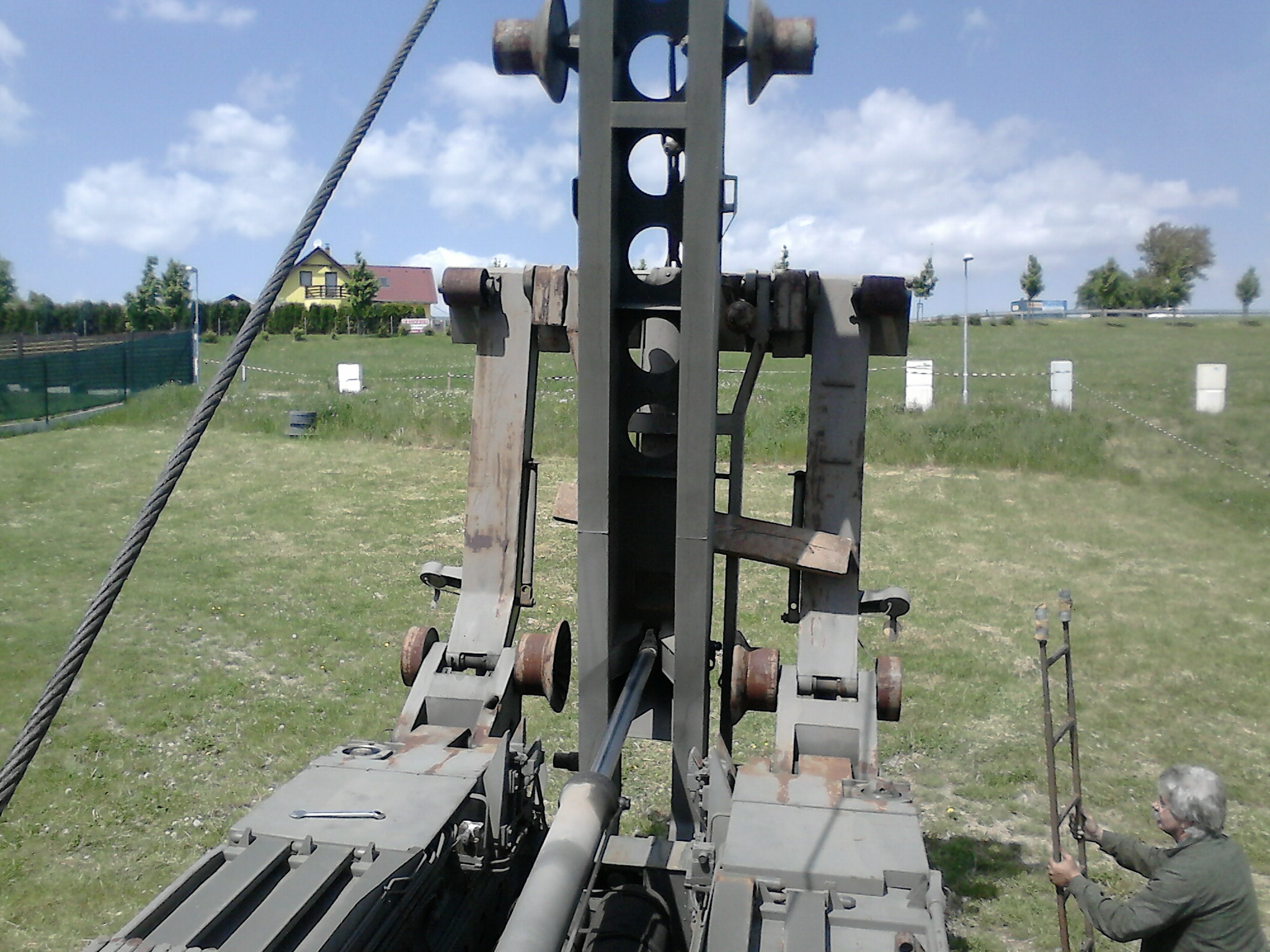 Na foto vidieť natočené nápravy návesu. Bol to slušný bočný náklon no už sa jazdilo v horšom. Nevieme prečo no nápravy sa stočili doli svahom čím sa zúžilo ťažisko a náves šiel na bok. No a stiahol aj ťahač. Išlo sa pod řezačkou takže cca 10km/h. Postaviť to išlo celkom zľahka aj keď vyprošťovák mal čo robiť aby sa tam dostal. Ale chlapi vedeli čo robia. Nikomu sa nič nestalo, šofér bol chválabohu pripútaný aj na poli.