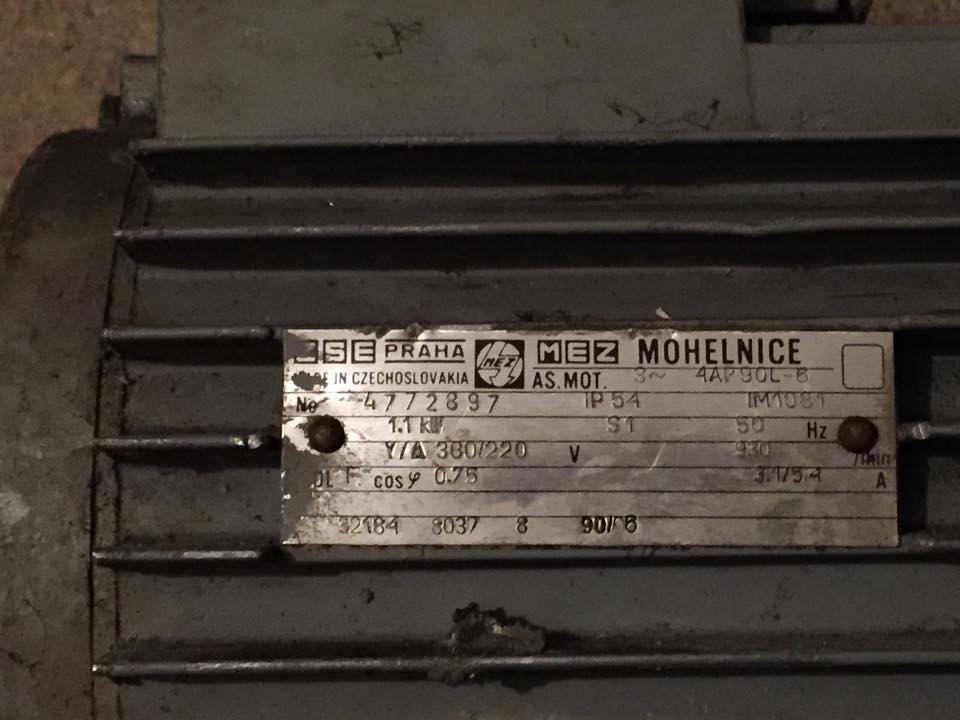 Prodám elektromotor 1.1kw 930 otáček.Motor je plně funkční odzkoušen elektrikářem.