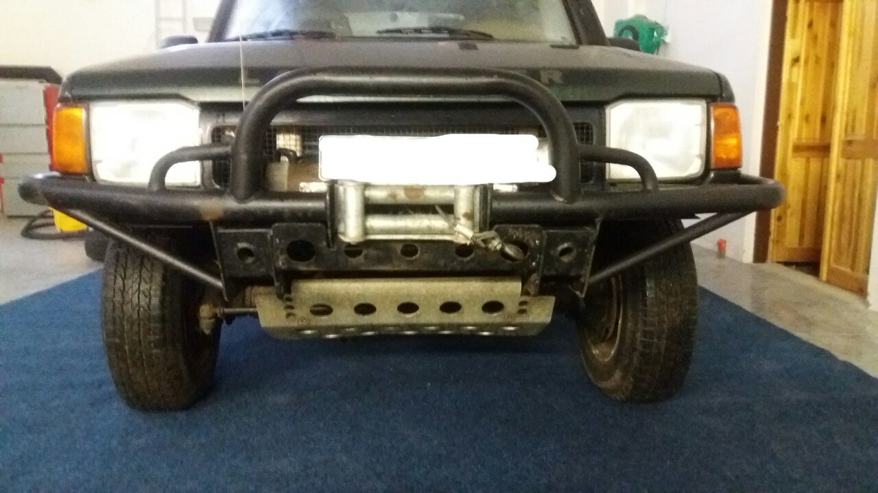 Já střelím tento. Je funglovka koupenej na jaře u Eliota. Když jsem ho chtěl šupnout na auto tak jsem zjistil, že mi tam docela blbě překáží trubky od chladiče převodovky. Nechce se mi do toho zase tak moc řezat a naviják mám vymyšlenej jinak. Můj origo spevněnej nárazník šupnu do prášku, udělám tam průvlak na syntetiku a naviják napasuju do prostoru rámu pod chladič.