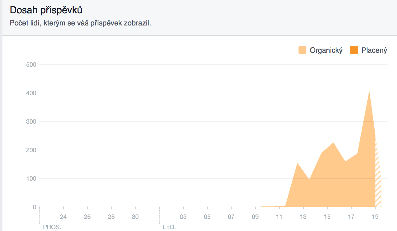 Příspěvkový dosah 400 po těch pár dnecj je celkem potěšení.