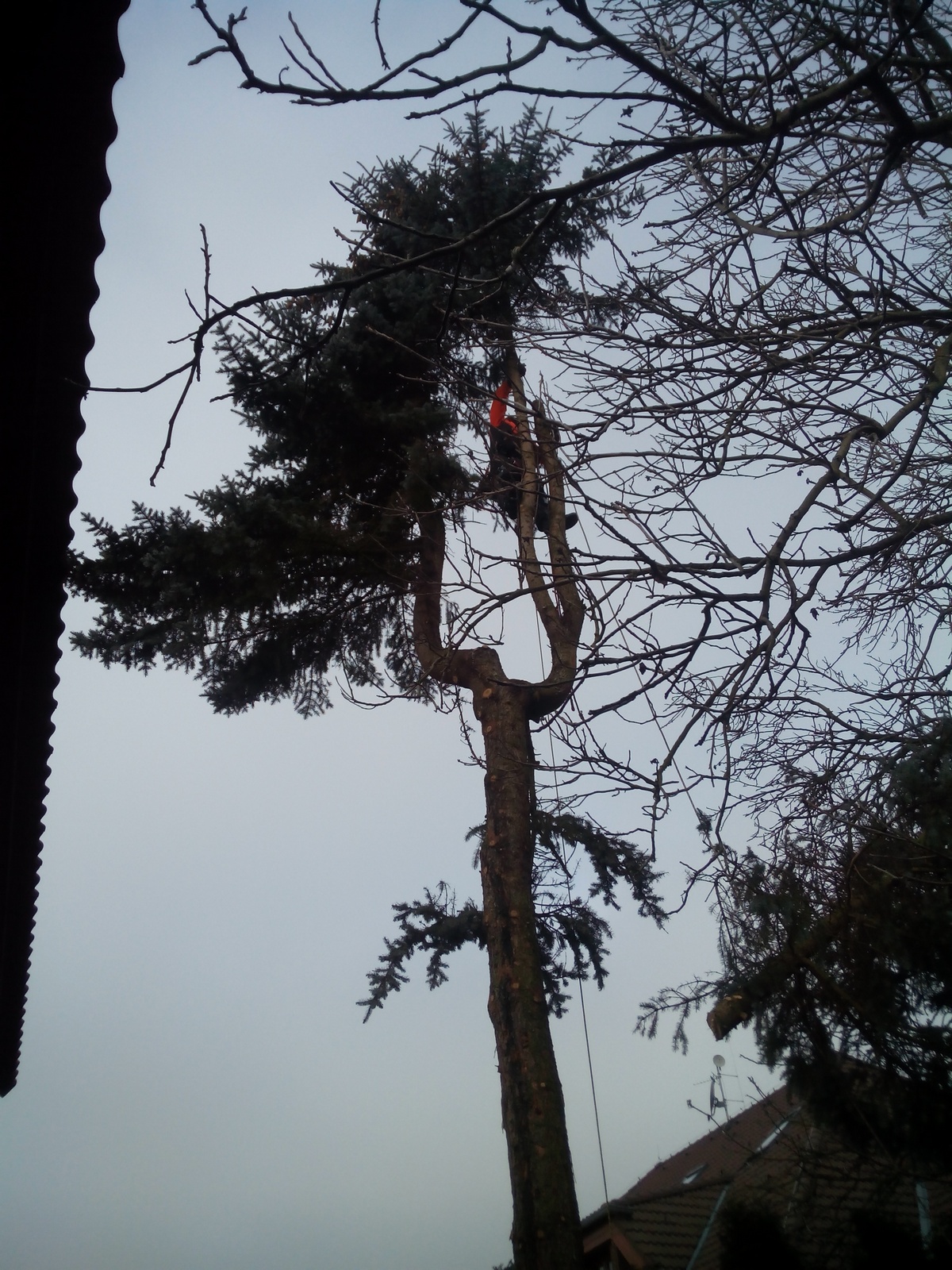 Takže tentokrát provětrávám často Husqvarnu T540XP. Je to vážně super pilka... Můžu s ní odřezávat i větší špalíky ze shora a má na to stále sílu... Jinak smrk byl kdysi dávno "odborně" ošetřen a po tom trojáku se lezlo jedna báseň, zvláště když to celkem ještě foukalo....