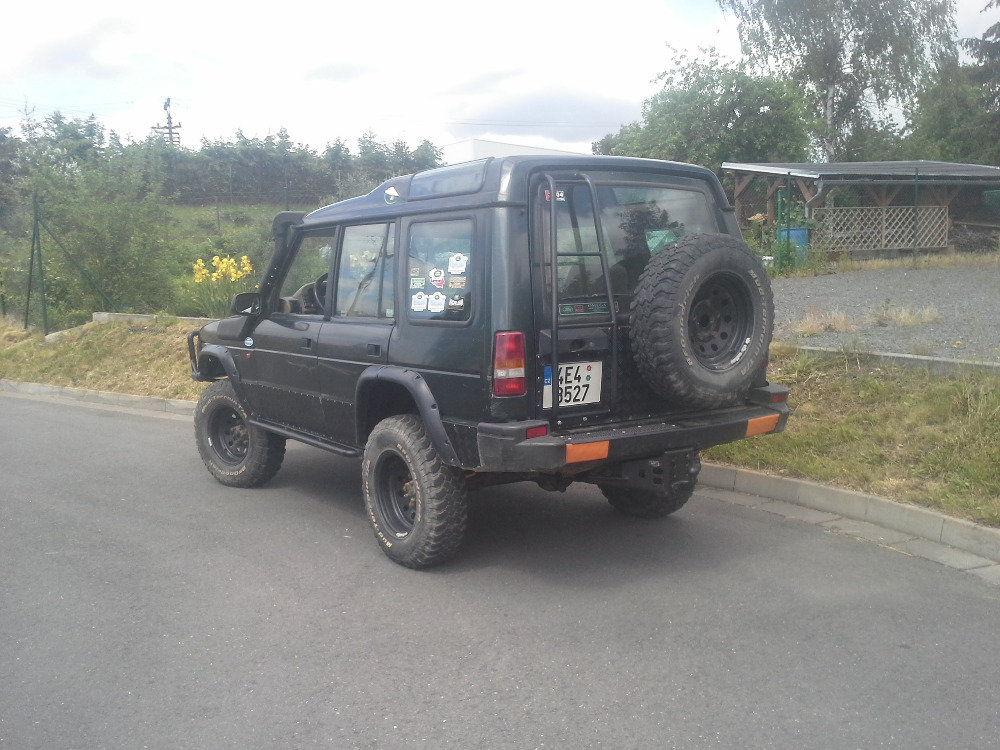 prední trubkovej naraznik s "ramem" chrání svetla i blinkry navijak 13500lbs (rozbita dalka a nefunkční kabelový ovladaní, pridavný dalkový,snorchl od czapa, flexi 50mm lemy ty zadni si myslim oproti tomu co sem mel možnost videt,hodne povedene provedený (jak zapravený dveře tak zadní přechod podbehu a lemu) hliníkový plechy kolem dokola i pate dveře v cerným komaxitu a na kapote tež pevnostní naslapy s trubkou (po otevření dveří tvoří trubka s naslapem rovinu),vzadu origo naraznik delaný festovní kryt nadrže,delaný nový držak rezervy a zaroven z boku hiliftu (z duvodu zmeny polohy rezervy) a zrovna sem včera delal žebřík jeste ho nemam v laku,zadní svetla 200tdi, tapec patych dveří z hladkeho hliniku s odlopnou poličkou,co se tyče podvozku tak cca 4 roky starý (davaly se tam fungl nový) komplet brzdiče a kotouče na celým aute z defa 110 brzdí to fakt skvele,panceroví delsi brzdoví hadičky goodride 3x,zadní brzdy v medi ,vzadu kardan z 200tdi takže dva křížky, v predu z nejakýho defa s vetšímy křížky nový tlumic řízení premisten na stouchacku,prevařený mangelsy s 235/85/16 bf mt