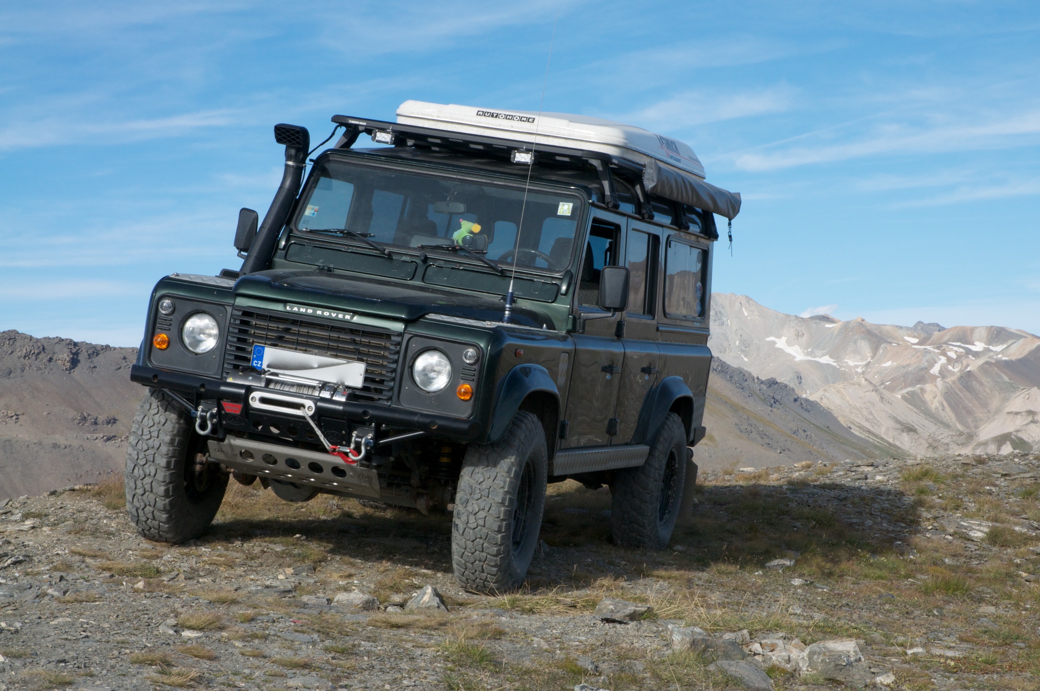 Hezká fotka pro porovnání. Děkuju za pochvalu. Starám se o ni jako o milenkuDiglobe píše:Jsem rád, že se diskoška dostala do správných rukou. Vypadá pořád dost dobře. Nejdřív jsem si ji stavěl do terénu a pak mne bylo líto ji v něm prohánět. Takhle vypadala na začátkufugín píše:Dovolte abych se taky podělil o svoji radost. Auto sem koupil před více jak dvěma lety (jako můj druhý vůz značky LR) od Digloba v tak výborném stavu že opravdu patřilo mezi hodně hodně málo D2 v takové kvalitě,za což mu dodnes patří můj veliký dík. Disco bylo téměř v originálním stavu s bezchybným interiérem ve světlé kůži,neporušeným lakem a bez jakékoliv koroze. Je to ročník 2004 s manuální převodovkou a mezinápravou origo vyvedenou do kabiny. Je zvednuté na OME o dva palce,má naviják Warn 9000 se syntetikou,přední pružiny +100 kg,svody vyměněné za frézované,má vyhřívané sedačky,zrcátka i obě okna. Za ty dva roky co mi slouží prodělalo výměnu všech trubek od a k servu,výměnu náboje kola,výměna pružin řadicí páky,má nové měchy na které nedám dopustit. Disco dostalo MT pneu v rozměru 245/75 R16(už se mi zdají malé),CB stanici,časem sem mu vyrobil rozkládací spaní se dvěma uzamykatelnými šuplíky,pak bylo nutné koupit a instalovat nezávislé horkovzdušné topení. Zvolil sem ruský Planar o výkonu 2 kw a je namontován na podlaze pod levou boční kapsou v "kufru" a ovládací hodiny pěkně u hlavy u postele. Td5ka byla osazena zvýšeným sáním a dostala čip od Tomáše (jede prostě skvěle). Další drobné opravy a úpravy nestojí za řeč,poslední velkou úpravu prodělalo disco nedávno. Žofinka dostala krásné nové pevnostní nárazníky,ochranu řízení z 10mm hliníku a ochranné mřížky předních světlometů které toho asi moc nezachrání,ale vypadají hezky. Za tu dobu co u mě slouží přibylo sice pár šrámů od větví atd,ale stále je to fešanda. V TP je řádně zapsán přední pevnostní nárazník s navijákem Warn,přední ochranný rám (na autě není),boční ochranný rám (taky není),střešním nosičem a alternativní pneu až do rozměru 265/75 R16. Do budoucna mě čeká oprava waťáku a asi i spojka. Za 340 km bude oslava ujetých 200000 km,tak si to už zaslouží. Tady pár fotek současné podoby: