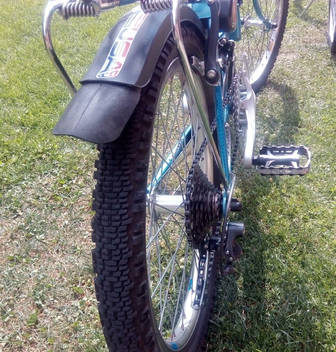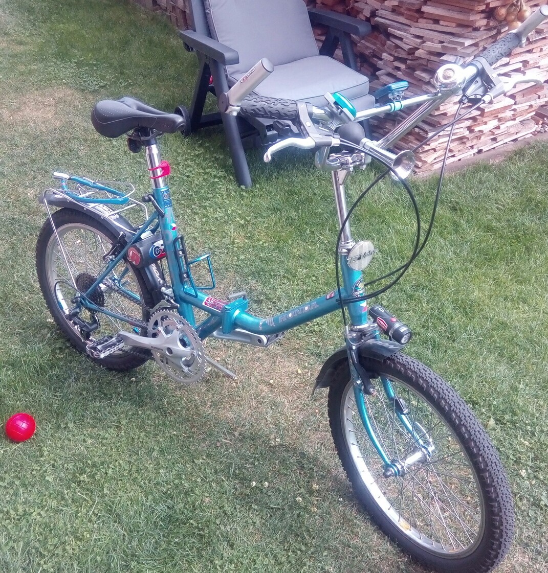 Můj otec v důchodu se zabejvá ůpravou skládaček na přání (zakázku). Až se k němu dostanu neco nafotím. Barva, polepy a výbava. Jestly nebude mít nic momentálně na dílně nafotim jeho. Tří talíř v předu v zadu má tuším kazetu(8), řazení na řídítkàch, véčkový brzdy a všechy bovdeny v rámu. Ale samozřejmě může být i origo.