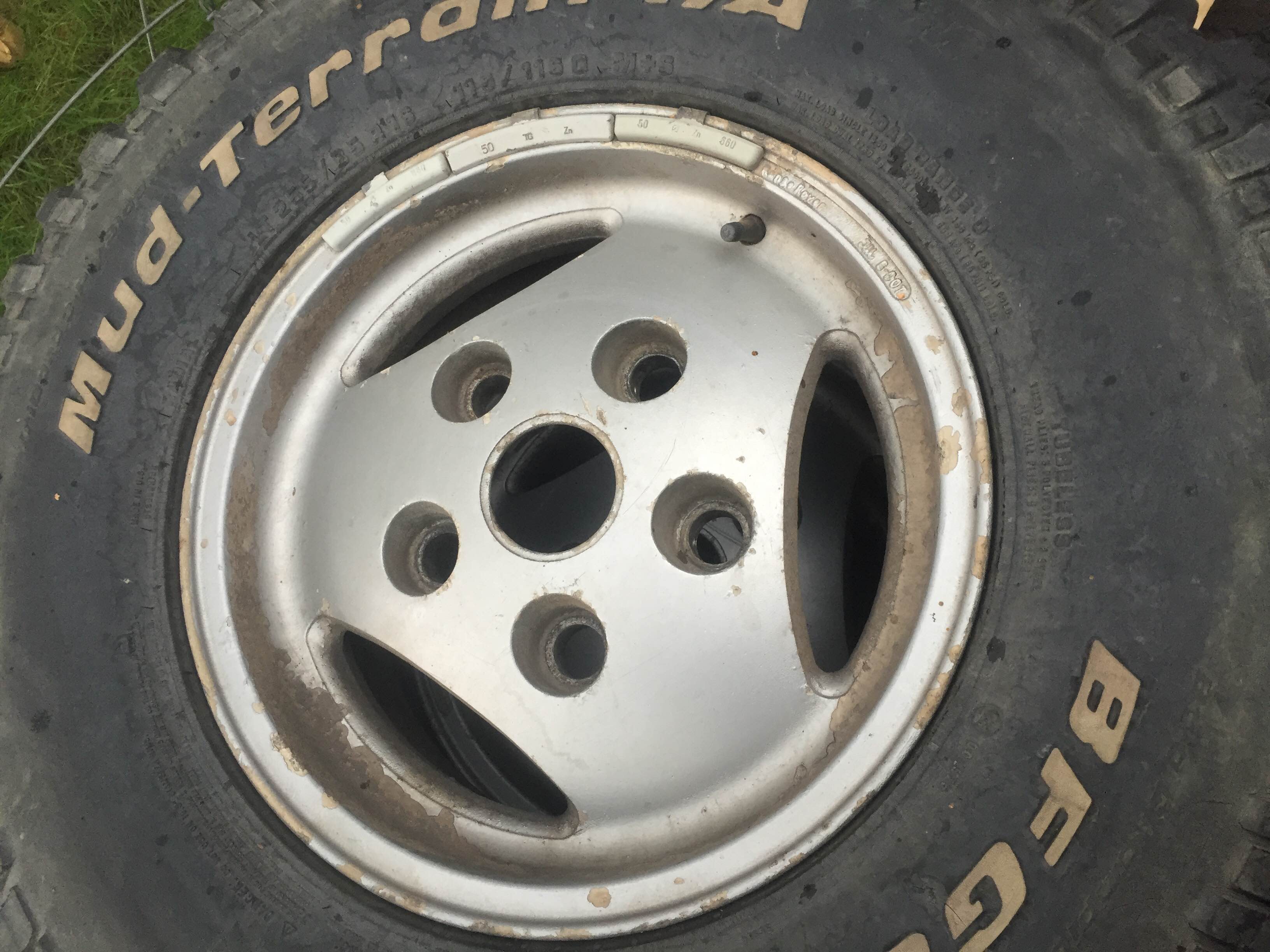 Prodám 4 ks kol RRC s pneu Bf Goodrich MUD-TERRAIN T/A. Nejsou to žádní krasavci je tam pár oděrek viz. foto.