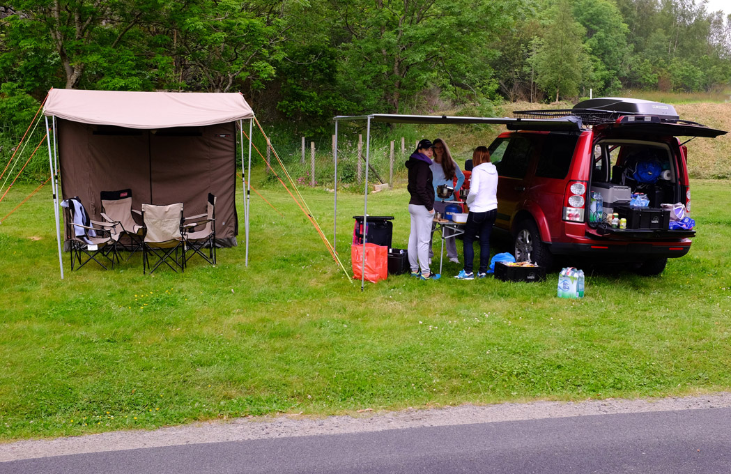 Teď mám markýzu od Huberta tady z fora a ta má ještě tyče, které ji vypínají směrem dopředu, mnohem pevnější plachtovinu a už si taky zkusila pořádnou horskou bouřku a odolala na výbornou...