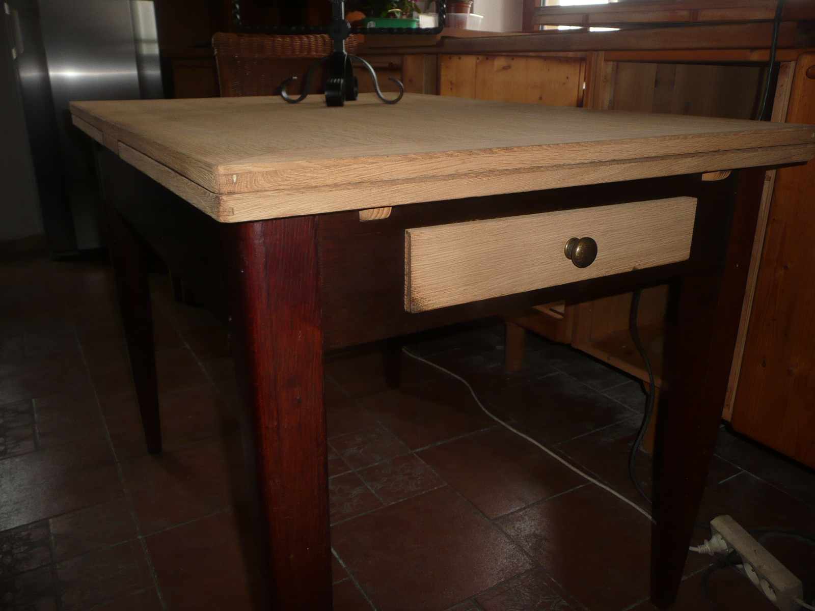 Selský stůl z masivu, 150 cm x 80 cm, dva šuplíky, moc pěkný. Cena 2500 kč.