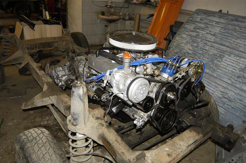 Rangie už je svlečený do naha. Po pravdě pod slušivým kabátkem už to zase tak slavné nebylo (ale není to nijak hrozné). Rám vypadá, že je OK, crossmember pod zadním spodním tailgatem je sežraný, footwells mají také sem tam nějakou tu dírku, stejně jako bulkhead, který je děravý pod čelním oknem. Dáváme dohromady podvozek - vzhledem k tomu, že auto není určeno pro těžký terén, volím standardní žluté pružiny Britpart + nastavitelné tlumiče Koni Heavy Track, polybush kit a ventilované brzdové kotouče EBC. Pak se to všechno zkušebně poskládá s motorem a převodovkou, co bude potřeba, dovaří se a pak hurá na pískování, antikorozní ochranu a povrchovku šasi a rámu karoserie (ještě, že můj Rangie byl vyroben před rokem 85, kdy se přešlo ze šroubování rámu karoserie na vaření - pak by se s tím asi pracovalo o poznání hůř). Jinak skiny obou dveří nejsou nijak krásné - vybublané s vrstvami kitu. Nevíte někdo o nějakých pěkných (připomínám, že je to dvoudvéřák)?