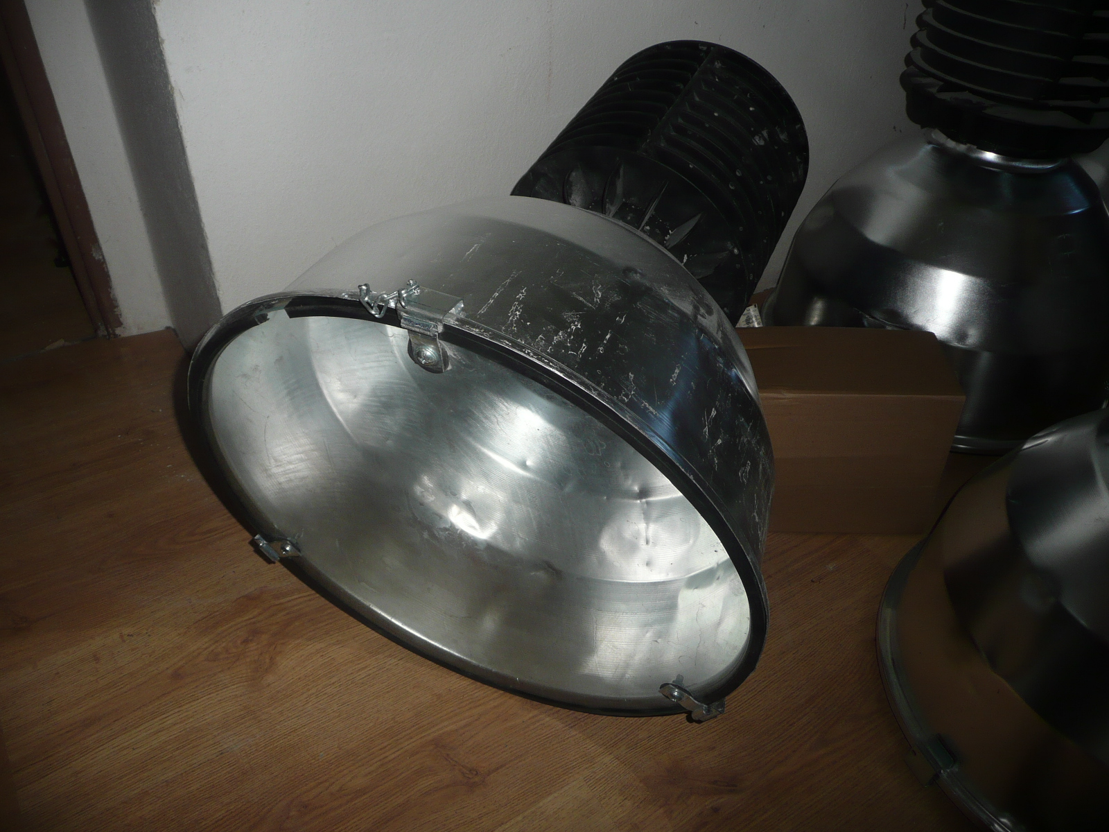 Velké efektní industriální lampy, hliník trochu potlučený,žebrované tělo, výška cca 70 cm, průměr 50 cm, vhodné do stylové kuchyně, nad ostrůvek apod. Jsou krásné. Omezený počet jen 7 kusů. Cena 1200 kč za jednu.