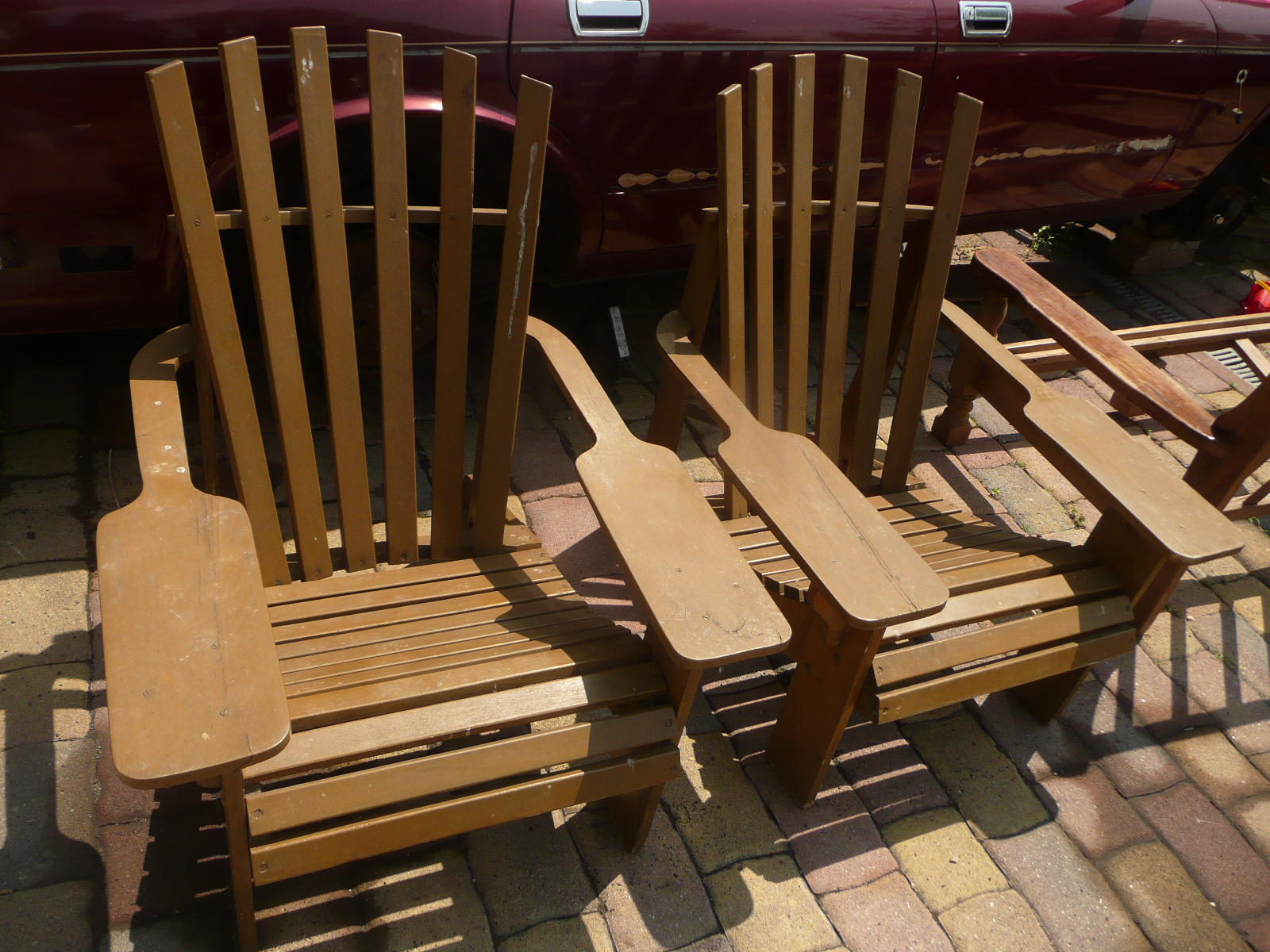Lavice a křeslo na zahradu, masivní dřevo, bytelná, těžká, výborný stav.