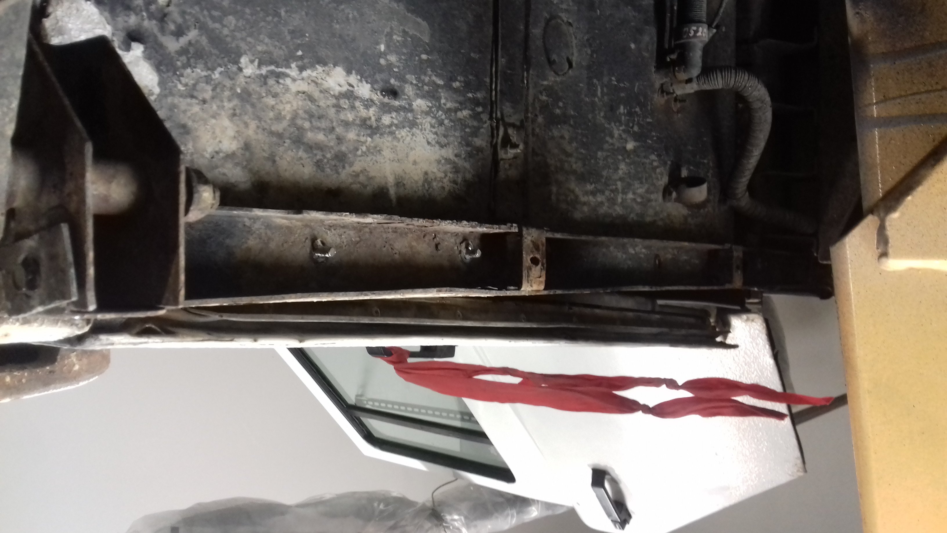 Borci, nevite jestli vyztuha karoserie za prahem drzi uprostred sroubama pantu? Na bocich odsroubovano a stale drzi. . .Diky