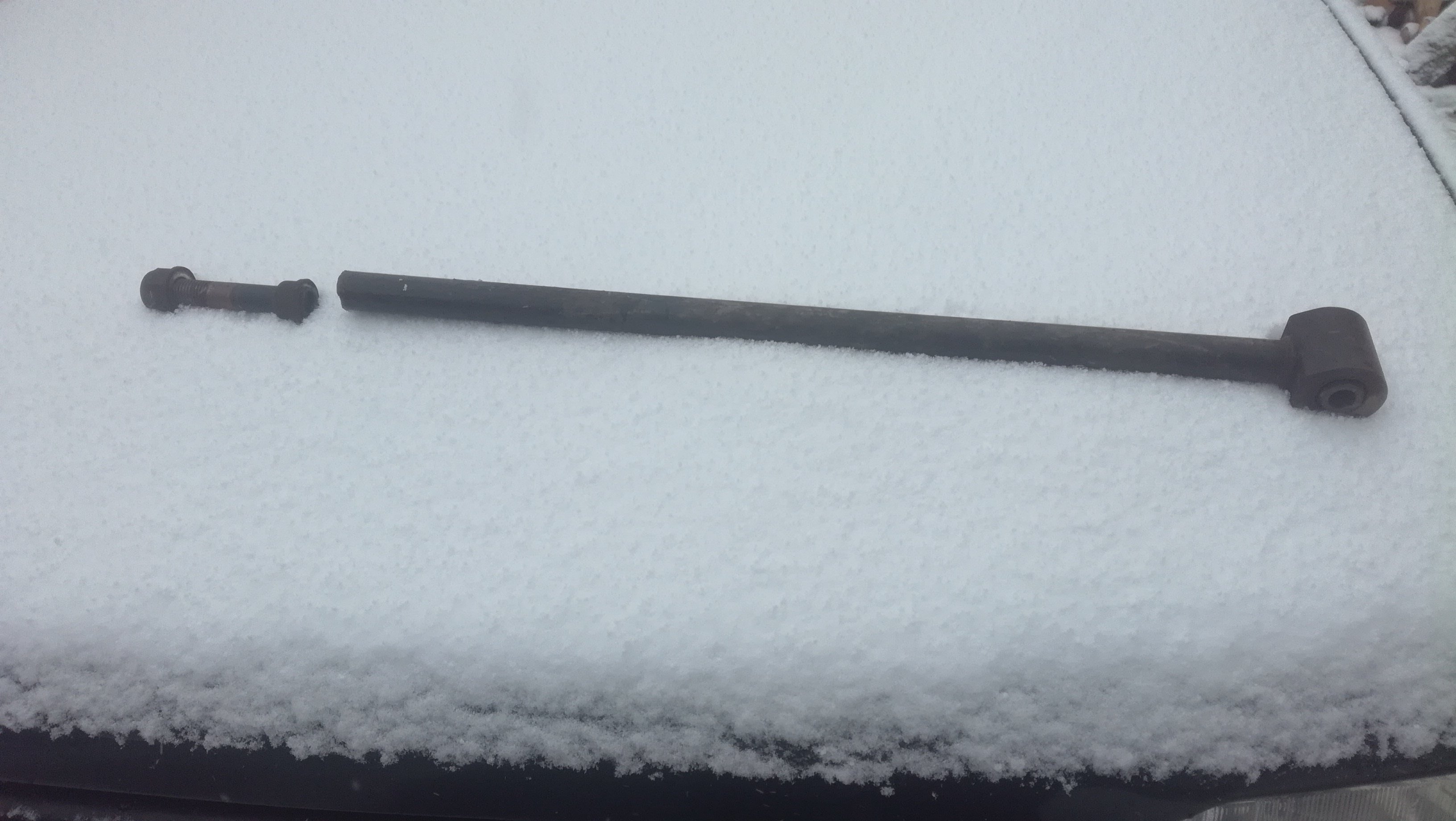 Rameno bylo prasklé,takže matku jsem povolil a vytloukl ze silentbloku zbytek ramene se závitem.Silentblok je zasunut do držáku směrem od zadní nápravy.Stářím ta guma nabobtná a tvrdne,to co je na fotce je už ten stav kdy silentblok neprojde otvorem a nejde vyndat.Povolil jsem ty tři šrouby aby sním šlo částečně otáčet a rozřezal jsem to kruhové železo co je na konci silntbloku pod matkou.Pak to jde vytlouct.Auto je standart bez úprav spíše unavené na pružinách.Svařit to rozhodně půjde,tam nemám problém.Problém vidím spíše v tom,že to je část,která se svařovat nesmí.c