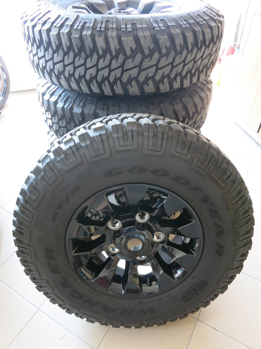 Prodám 5x Orig. Alu disk na Defender SAW TOOTH 16" černé, s novými pneu COOPER DISCOVERER A/T 3, disky bez jediného škrábanečku, vše nové sundané z nového vozidla, nejvyšší model kol na DEFENDERA.