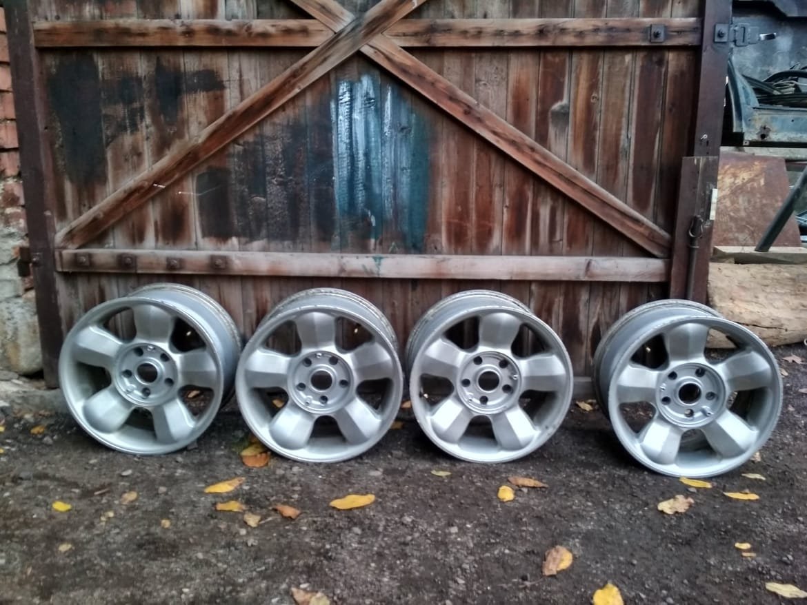 Prodám alu kola Borbet CV 8Jx16 s roztečí 5x120. Středová díra je myslím 72,5, takže původně nejspíš na BMW. Já jsem je koupil už s autem. Na Discovery 2 u mě víc než 8 let. Kola jsou nepoškozená a nepoškrabaná od chodníku, ale jsou po obvodu místy puchýřky, viz foto. Na Land Rover mám i středící kroužky a sadu matek, zda půjdou matky i na VW T5 nebo BMW netuším.