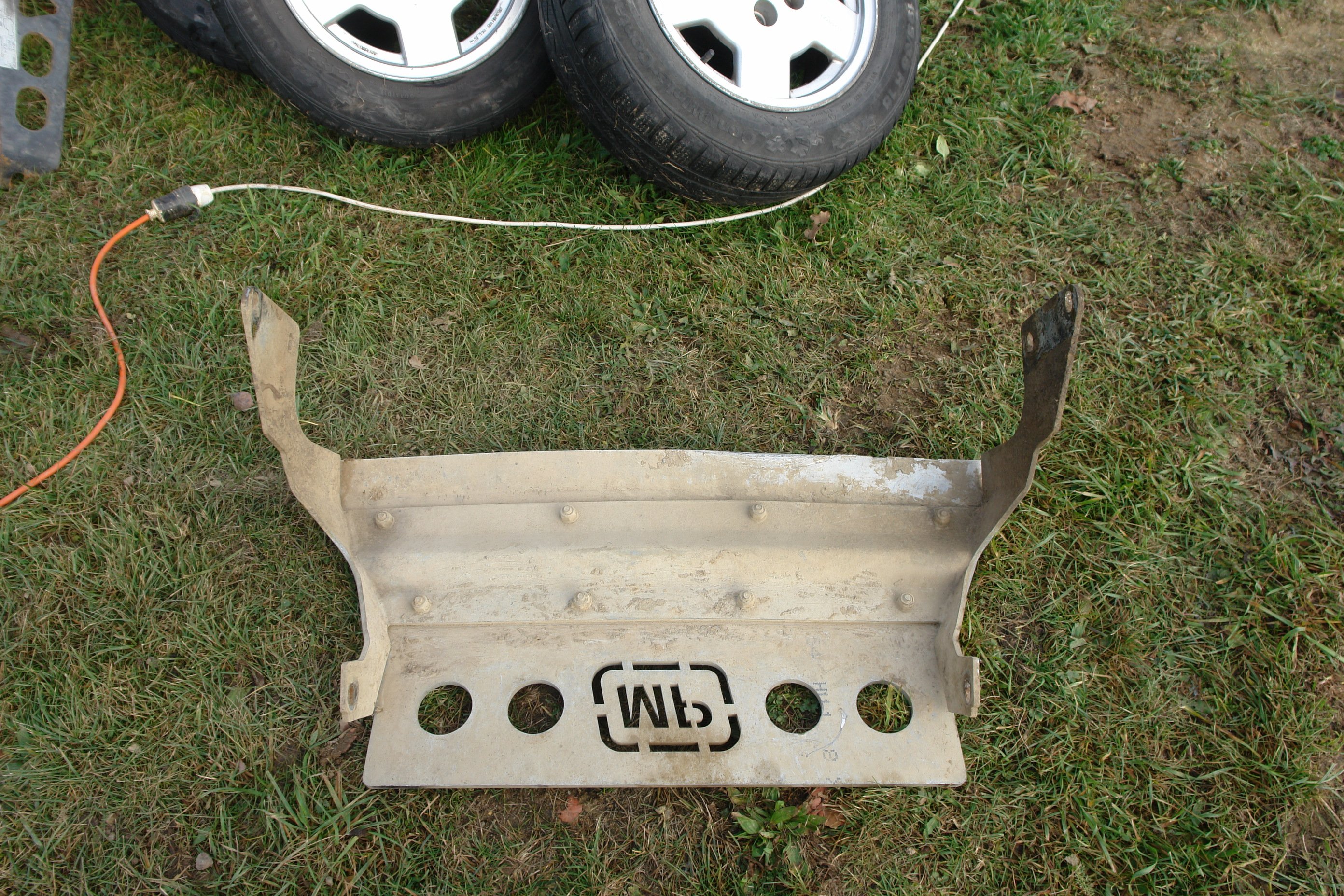 Sundal jsem ty nárazníky, na zadní je rezervace. Přední má lehce ohnutou tu spodní hranu uprostřed, myslím, že by se to dalo několika citlivými údery větším kladivel domodelovat zpět. V tuto fázi asi ideální ho rovnou opískovat a stříknout nějakou barvou, případně zinek. Je podřenej, oliškovanej, ale není nijak celej hnutej, to je asi podstatné. Jo a díry pro montáž navijáku jsou citlivě zvětšené, asi aby tam pasnul i trochu netradicční kus, zdá se že to někdo vrtal makarovem.