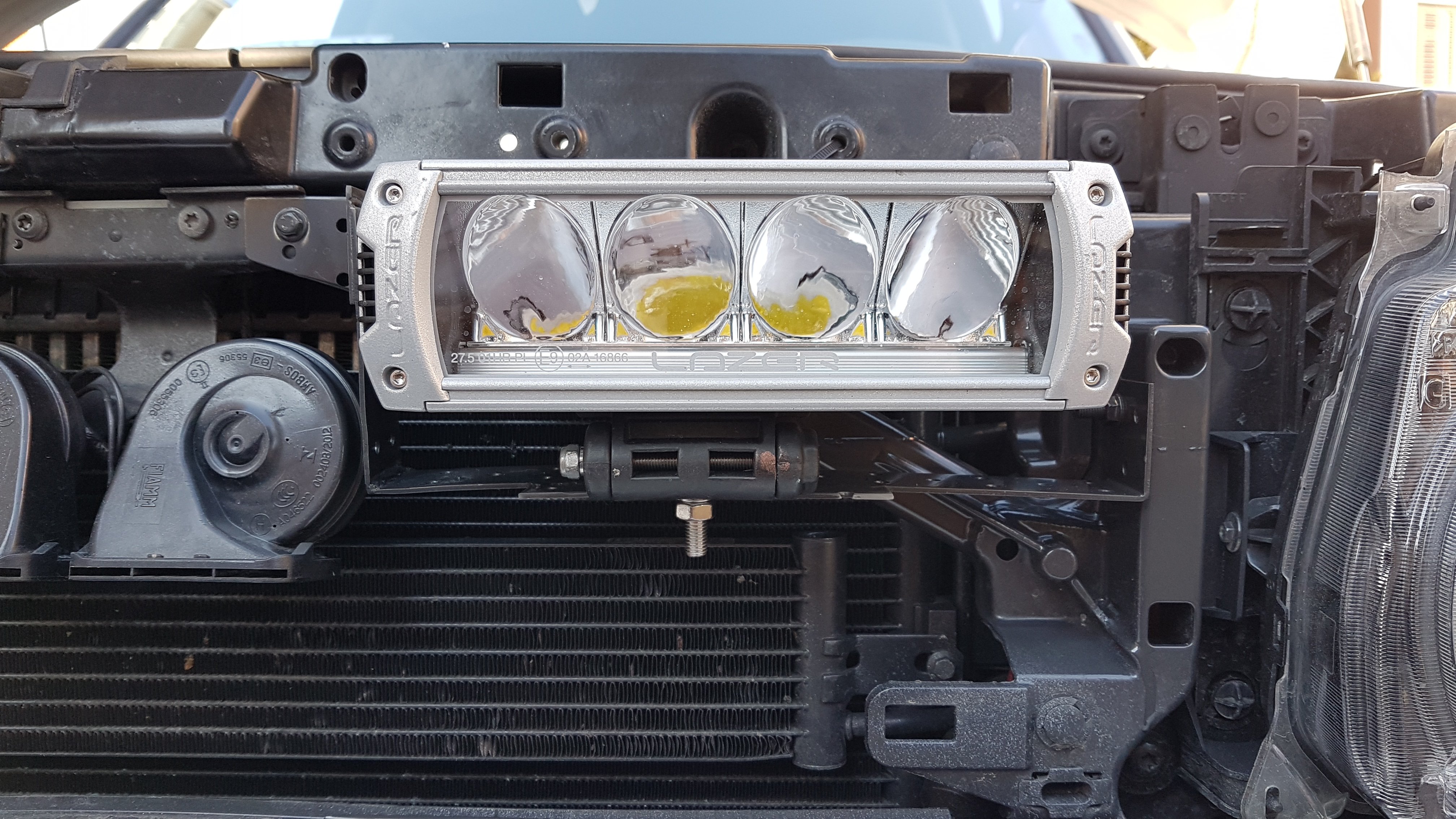 Naištaloval som Triple-R 750 s pozičným osvetlením. Relátkam som dal zbohom, treba ísť s dobou... Namiesto relé (pre spínanie diaľkových) som použil HEXFET tranzistor (IRF4905) s pomocným NPN tranzistorom (MPSA06) a dvoma odpormi (1K a 10K) a diódovým sčítacim členom OR (BYT16P-400 alebo 2x1N400x) pre združenú funkciu obrysové/DRL. Oproti originál držiakom(https://www.lazerlamps.com/home/vehicle ... land-rover), ktoré sú uchytené o plastovú masku, moja konštrukcia je uchytená o prednú priečku...tam kde sú klaksóny... voilà! https://www.lazerlamps.com/home/lights/ ... tion-light