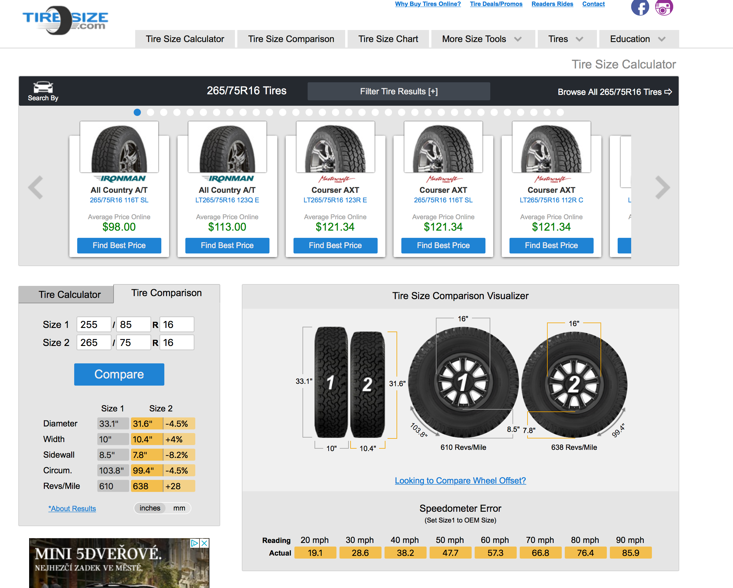 No právě, není pneu, jako pneu. TOYO MT 265\75 r16 je taky oproti KM2 širší a větší. Tak chci zjistit aspoň trochu, jaký je rozdíl. Ať vím jestli tm něco dám. Tady jsou i hezké fota: https://expeditionportal.com/forum/thre ... ics.14555/Adam P. píše: 26 dub 2019 11:54 změřit možu, ale nevím jestli ti to k něčemu. tady ty cooperky jsou totiž užší, než většina gum v tomto rozměru. a stejně tak výška, už jsou dost sjeté, takže to taky nebude odpovídající. ale jestli chceš, možu ti změřit BFG MT, kterou mám na rezervě. ta má tak 70–80 % vzorku, takže to by mohlo byt lepší... nebo použij na webu nějaký "tire size calculator", tento ti to aj pěkně ukáže graficky: https://tiresize.com/calculator/