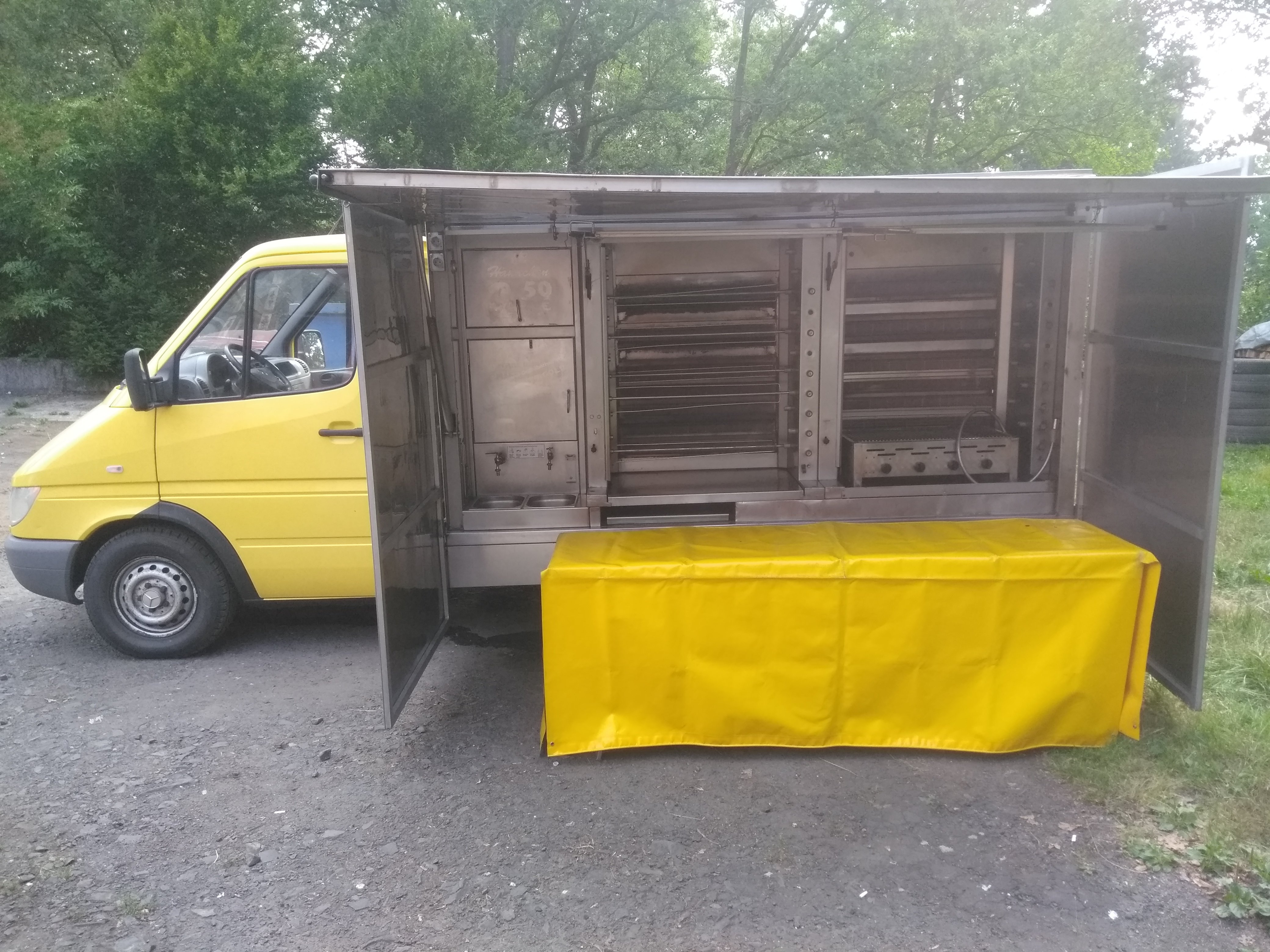 rv. 2004, najeto 247000 km, diesel 60kw, do 3,5 t, nerezová nástavba se dvěma grily cca na 120 kuřat, jedním přídavným stolnim na bajonet plynovou hadici, 10ks jehlic, mrazící boxy, nádrž na vodu, hygienický koutek, nádrž na plyn 116L, prodejní stůl, pevné bočnice k přístřešku, místo pro elektrocentrálu, nebo připojení 220 v, úložné prostory, vše funkční více na telefonu.doklady SRN. stk 5/2020, více stejných vozů v nabídce, cena 222000,- Kč, rychlé jednání - možná dohoda, registraci v ČR zařídím.vice na tel. 608255755, Karlovy Vary