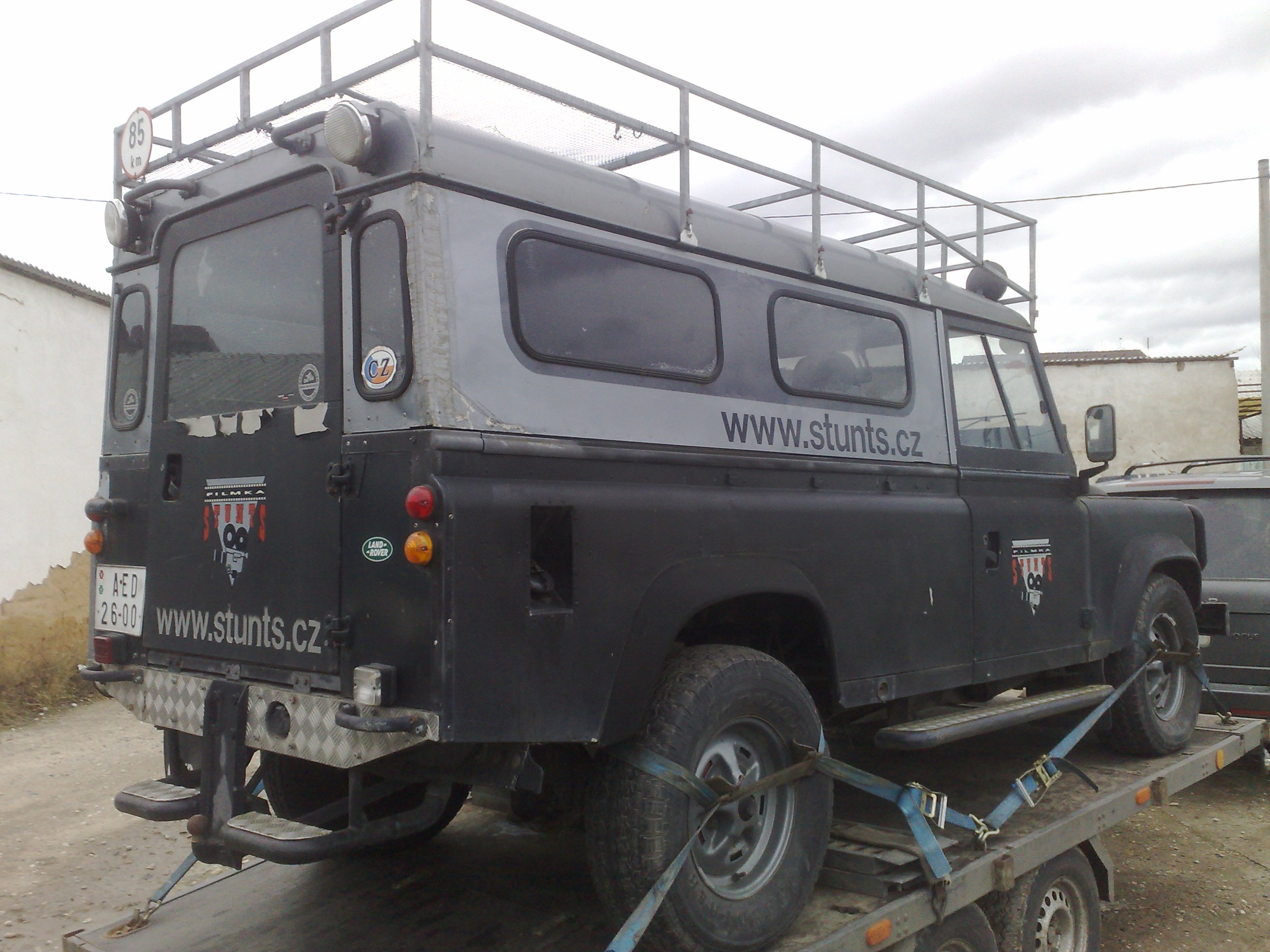 Je to předchůdce Defendera, takže ještě 110 HT. Zapsaných 9míst. Už na vinutých pružinách. Originál benzín 3,5 V8. Je to manuál s mechanickým vývodem na naviják, který je k tomu také, ale má poškozené soukolí.