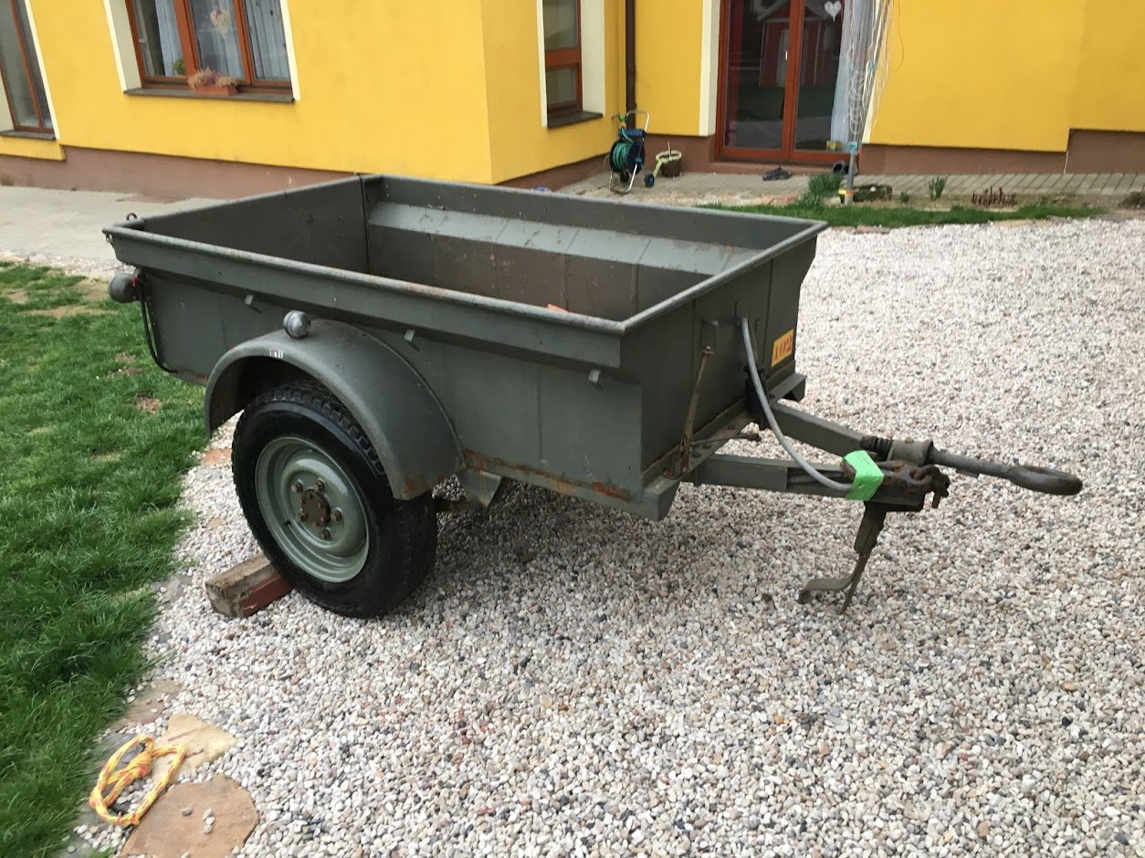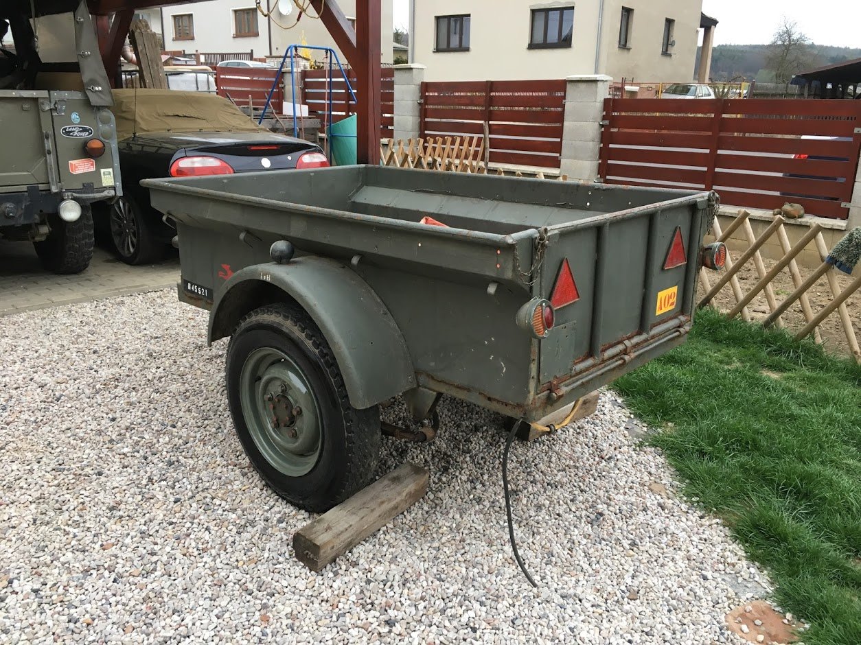 Prodám vozík typu Jeep/Bantam belgické licenční výroby (používány např. s Minerva LR). Vozík je na práci, je prorezlý na několika místech ve spodku korby, ale je tam potřeba dovařit jen pásek cca 5 cm na bočnice a přední čelo korby. Vozík má otevírací zadní čelo, osvětlení nemá (lampy na fotkách jsou vybrakované a vezme si je kamarád na Minervu). Jsou na něj udělané redukce na LR disky (i belgická armáda je používala s jeepy i LR), jsou k tomu nalakované LR disky ze série (úzké) s obutými dobrými pneu 6.00x16, původní jeepové disky k tomu. Možnost dodání dvou zadních lamp (indické reprodukce lamp Hella, podobných jako mám na Berniem).